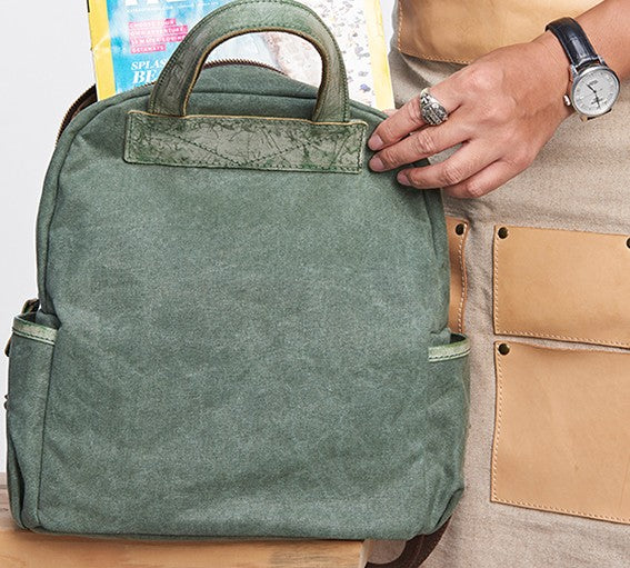 Design: Canvas Green Mens Cool Backpack Canvas Travel Bag Canvas Handbag for Men