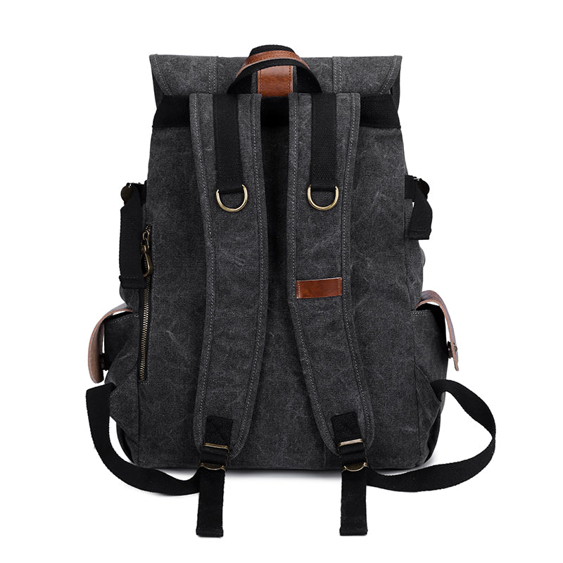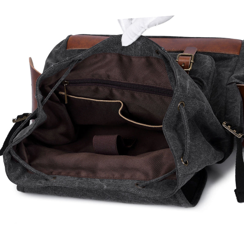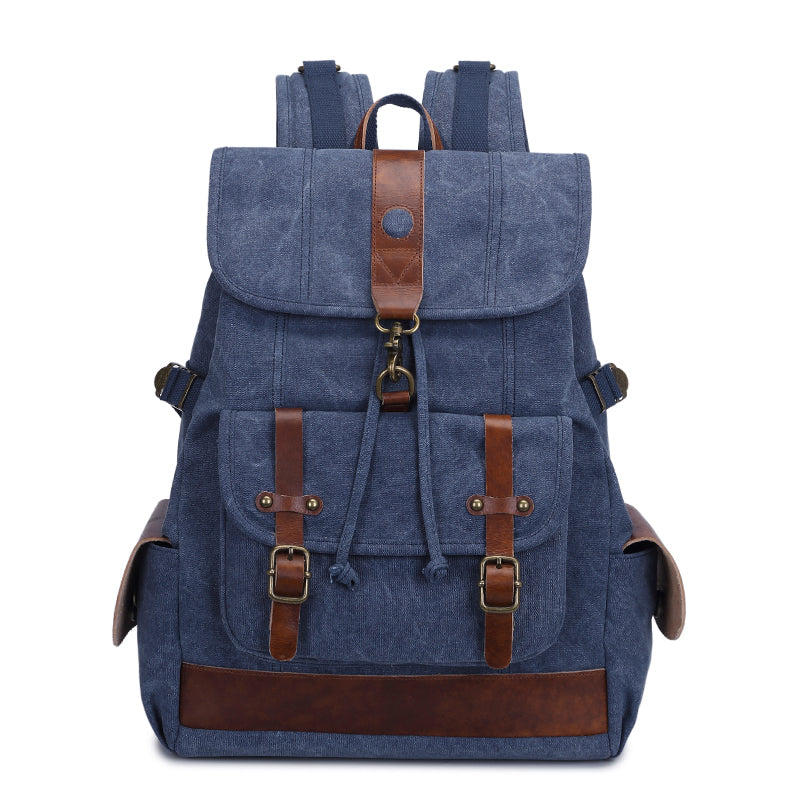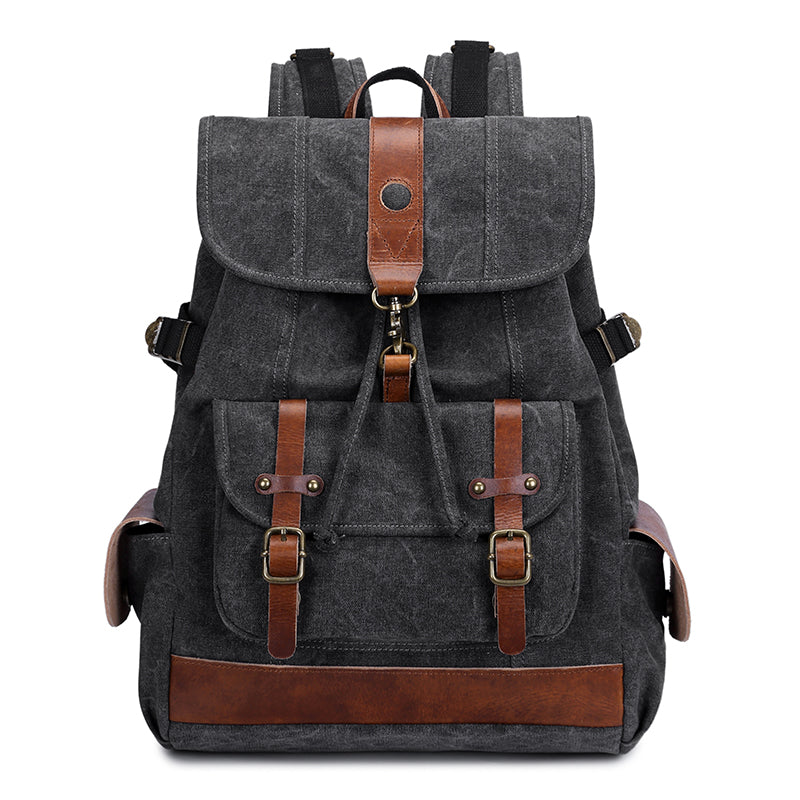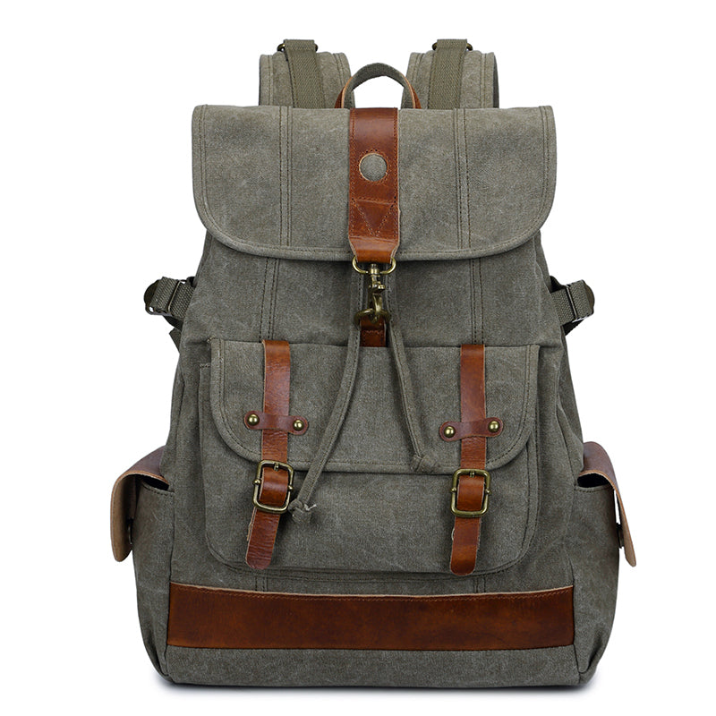 Style: Canvas Leather Mens 15" Black Hiking Backpack Army Green Travel Backpack Blue College Backpack for Men