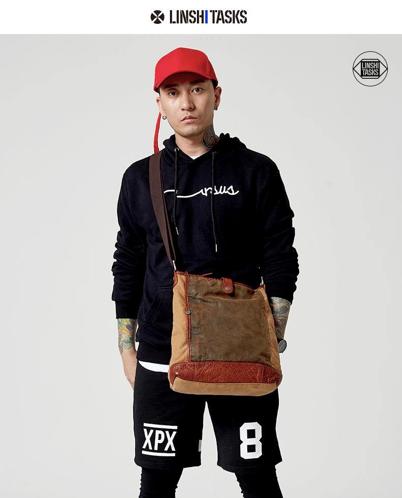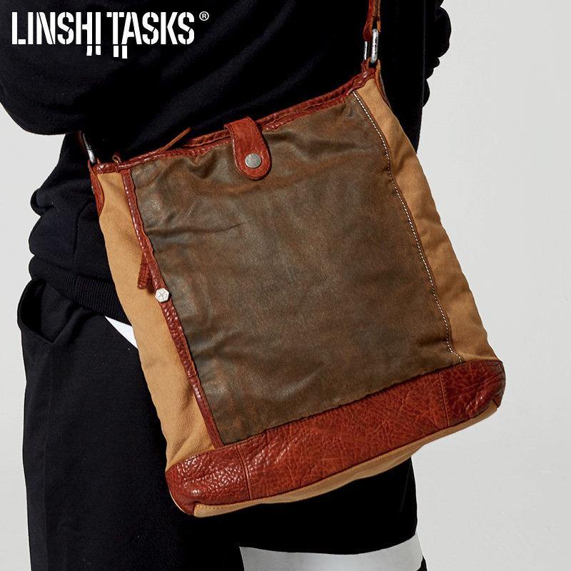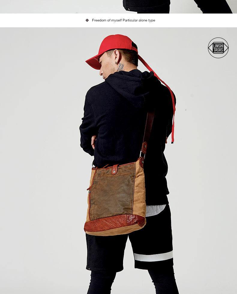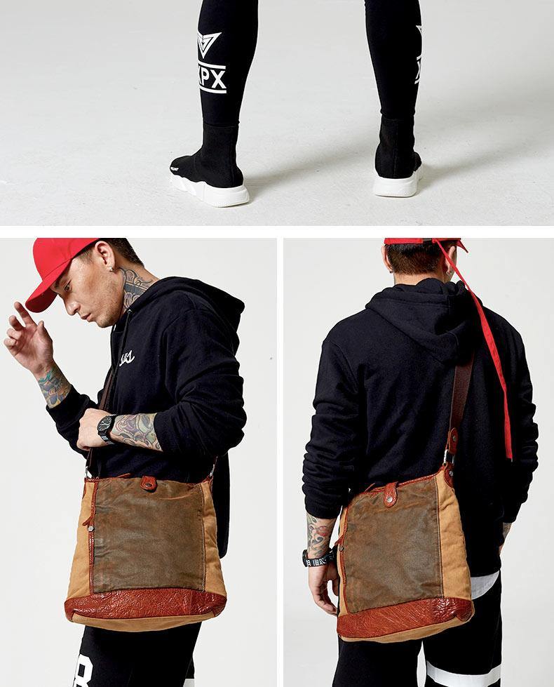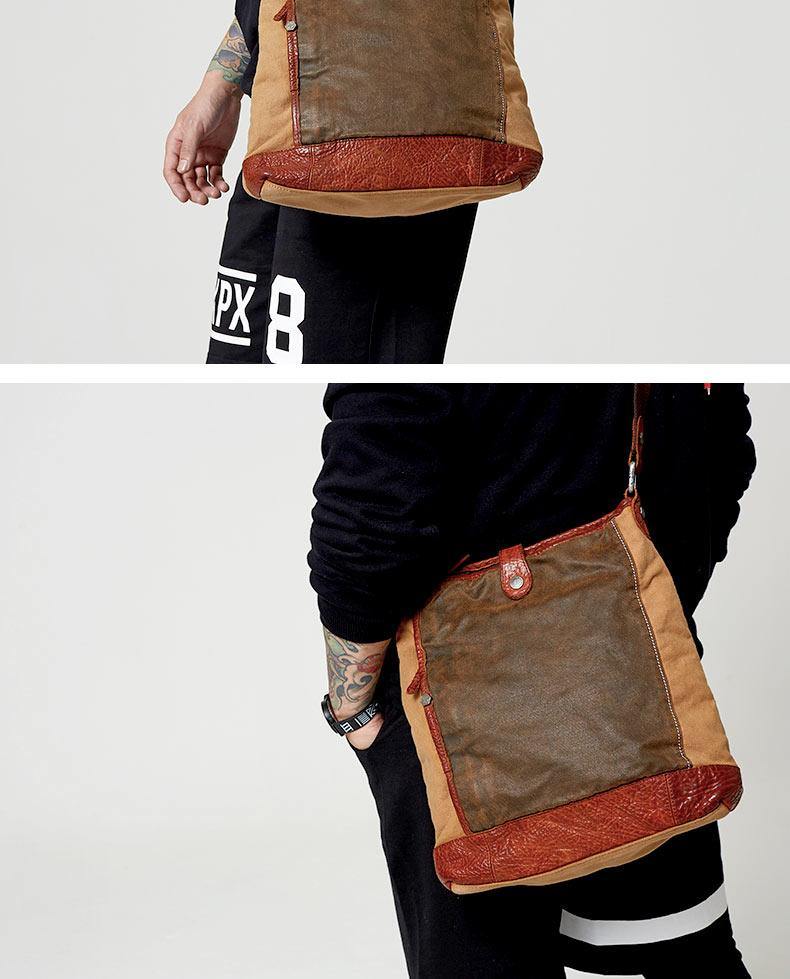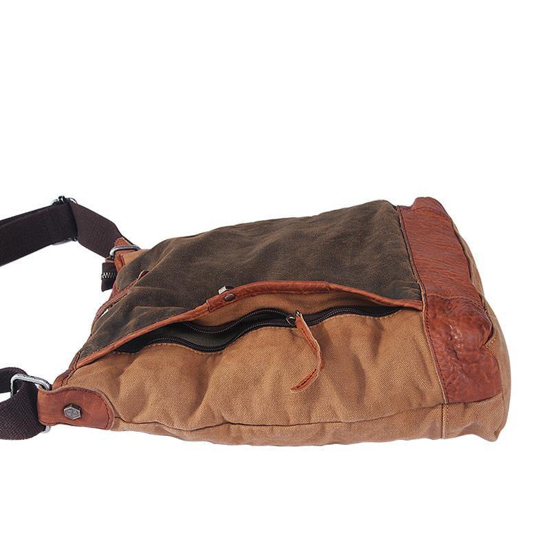 Design: Canvas Leather Mens Distressed Brown Shoulder Bag Messenger Bag Canvas Courier Bag for Men