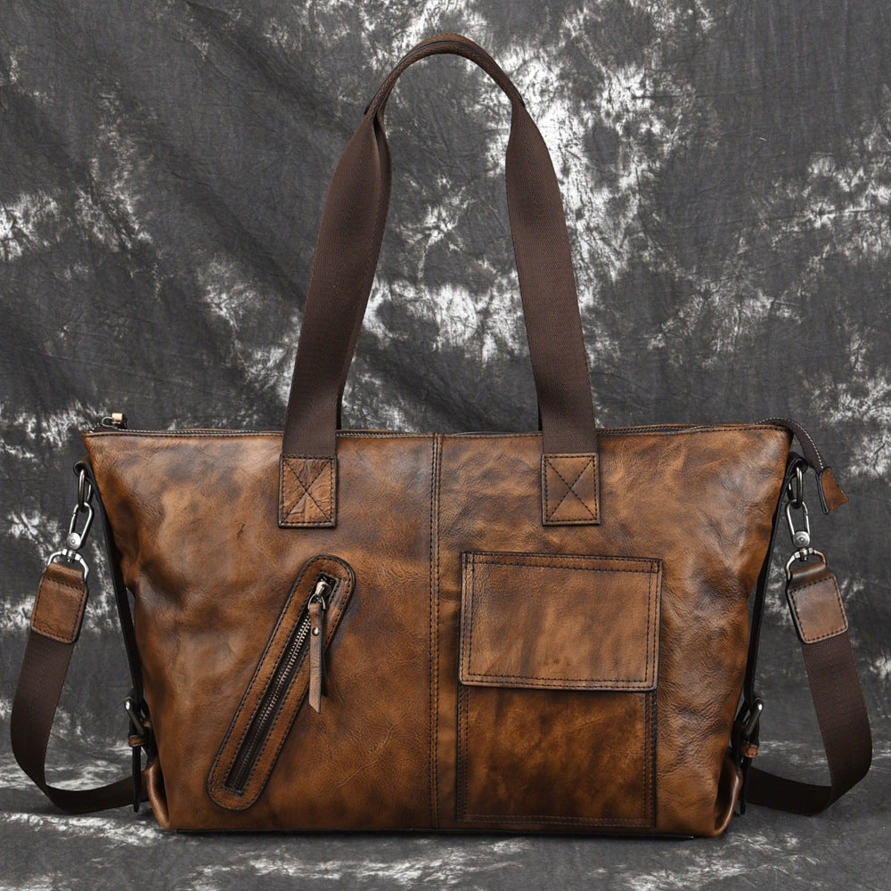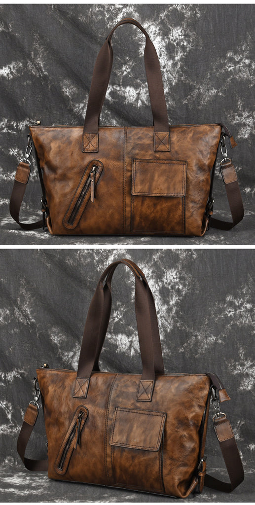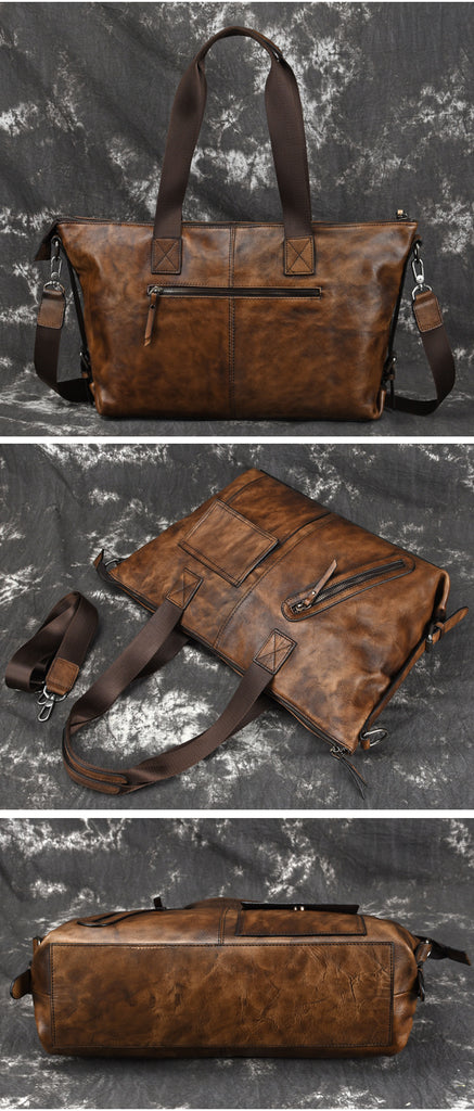 Design: Casual Black Brown Leather Men Handbag Overnight Bags Travel Bags Weekender Bags For MenOverview: