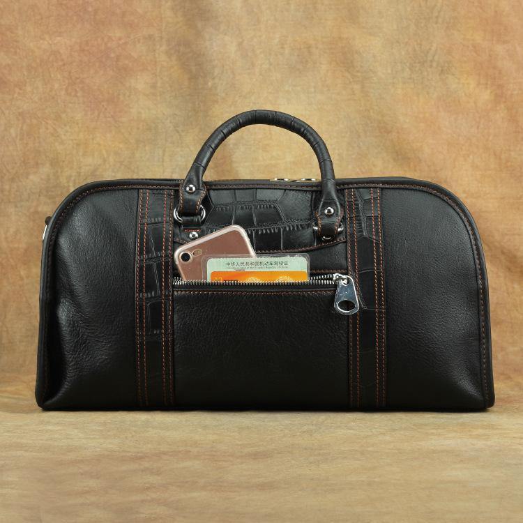 Design: Casual Black Leather Men's 13 inches Overnight Bag Travel Bag Luggage Weekender Bag For MenOverview: