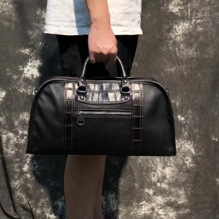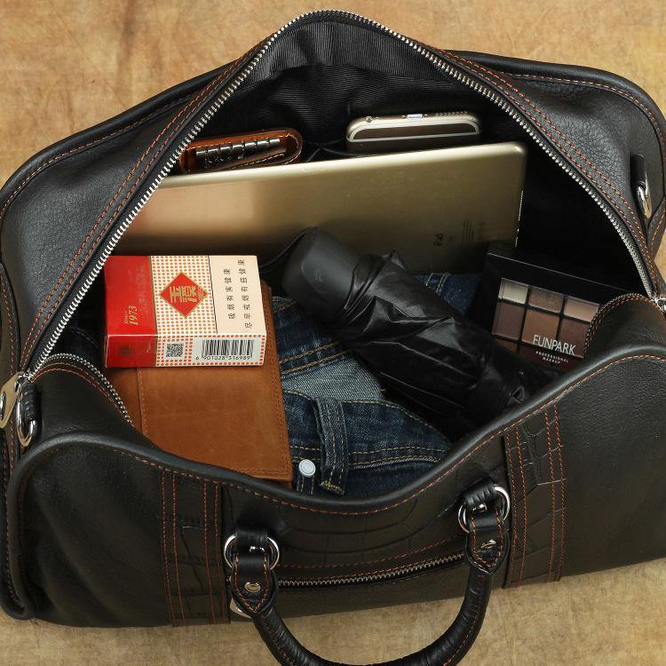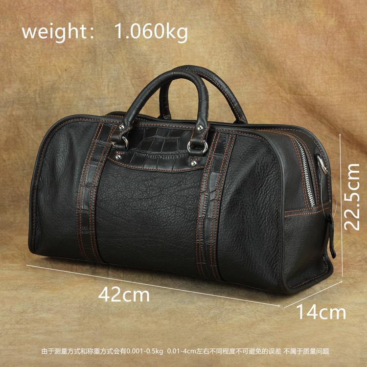 Design: Casual Black Leather Men's 13 inches Overnight Bag Travel Bag Luggage Weekender Bag For Men