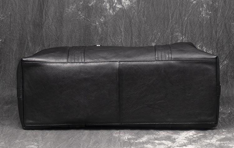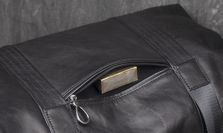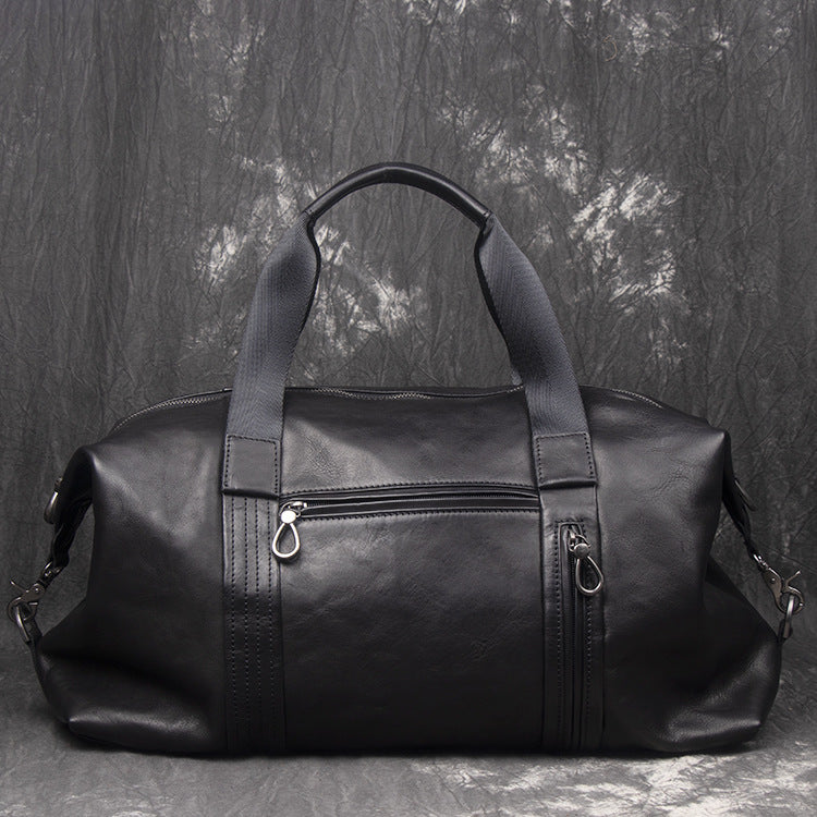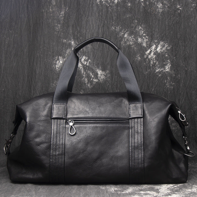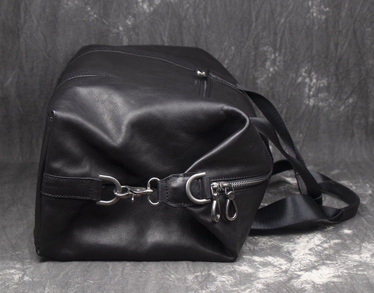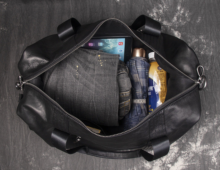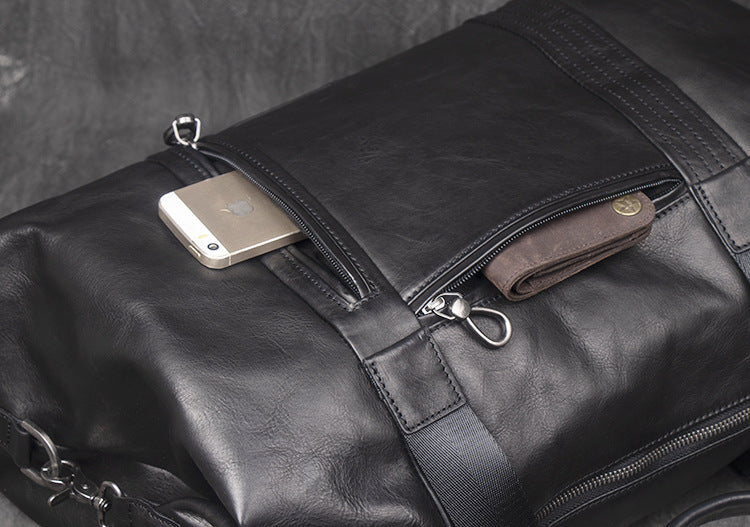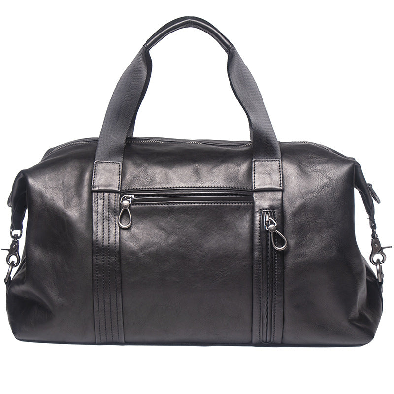 Design: Casual Black Leather Men's Overnight Bag Large Travel Bag Luggage Weekender Bag For MenOverview:
