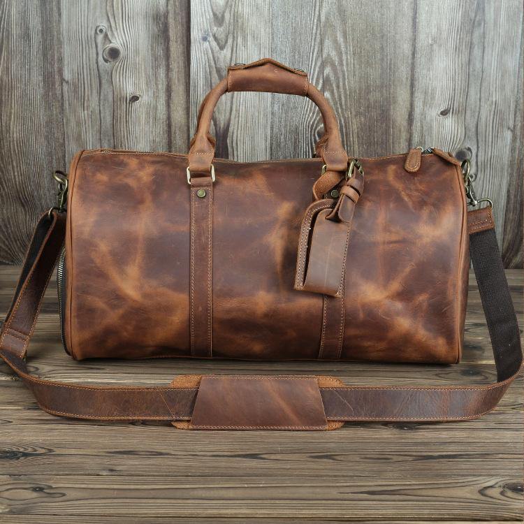 Design: Casual Brown Leather Men's 14 inches Overnight Bag Travel Bag Luggage Weekender Bag For Men