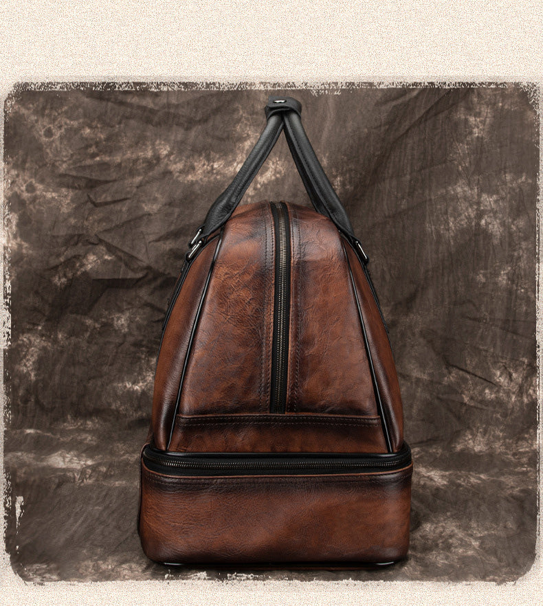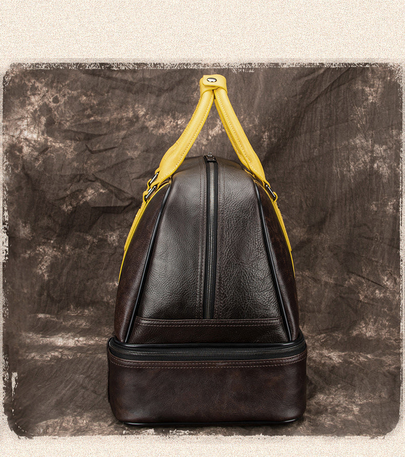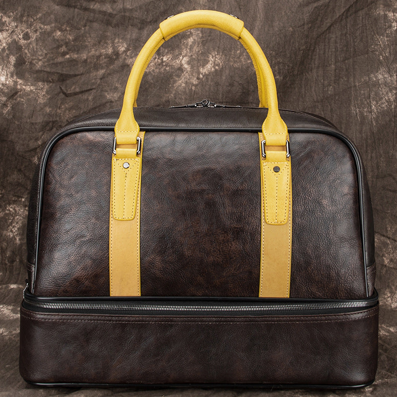 Design: Casual Dark Brown Leather Men Business Weekender Bags Handbag Travel Bags Overnight Bags For MenOverview: