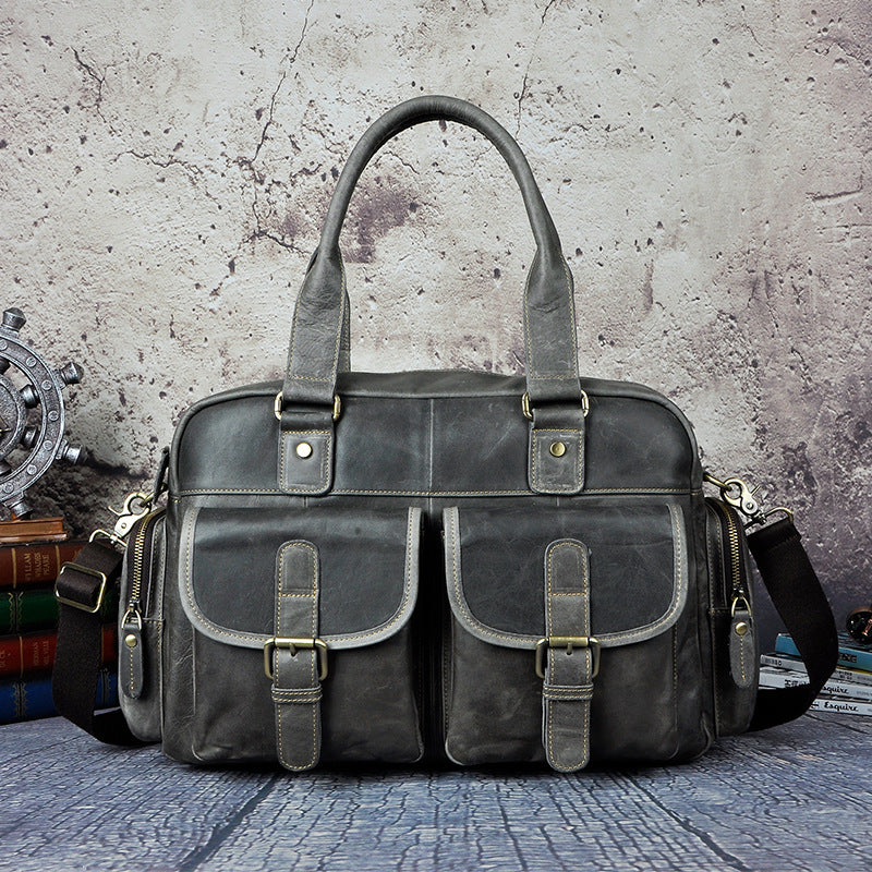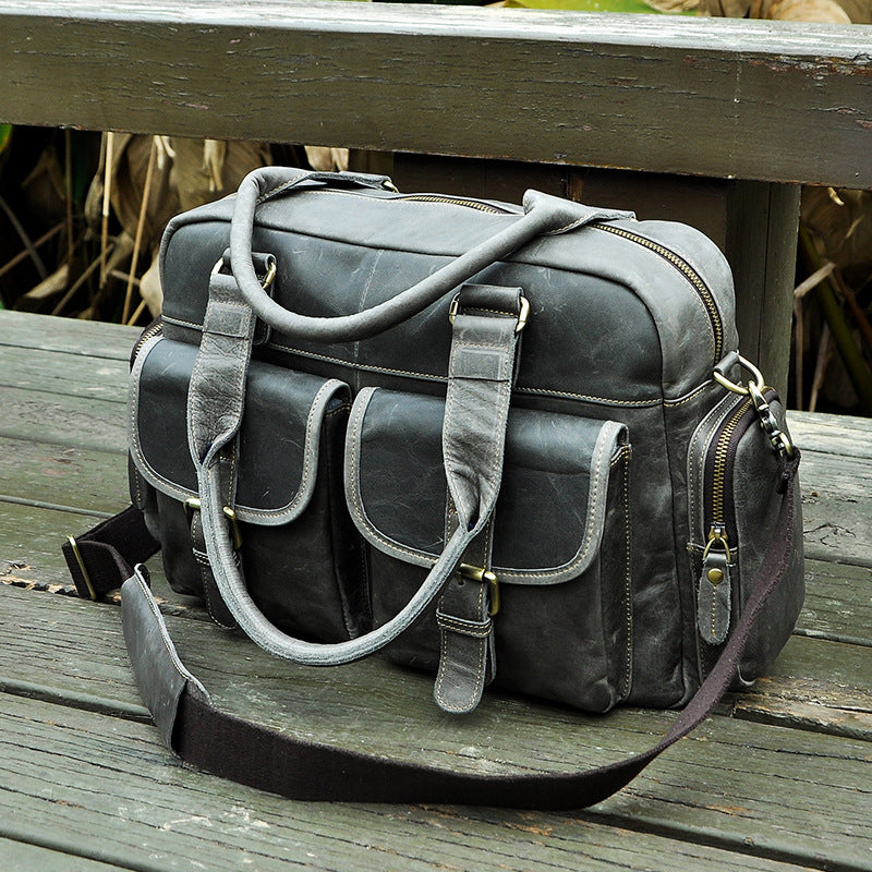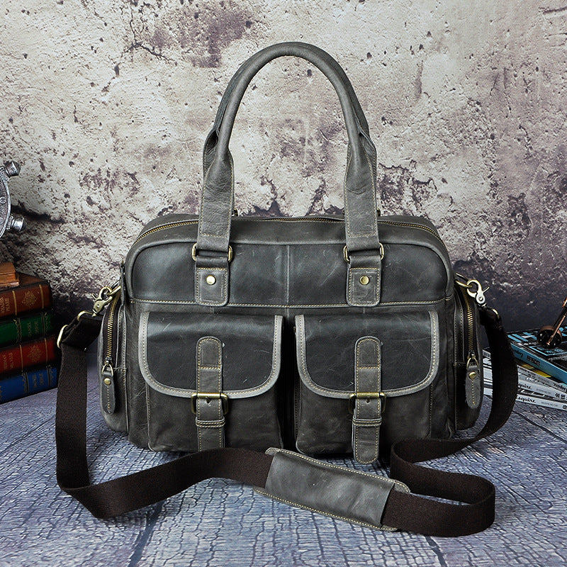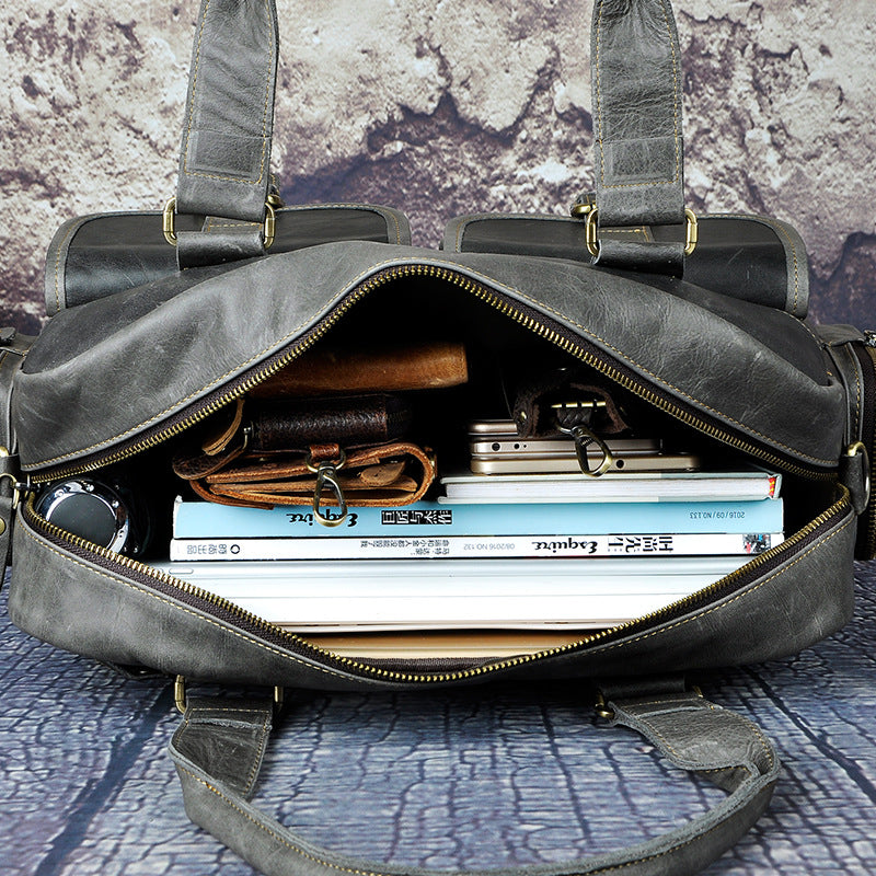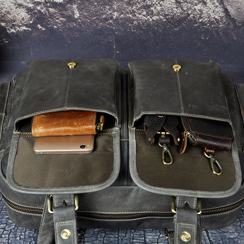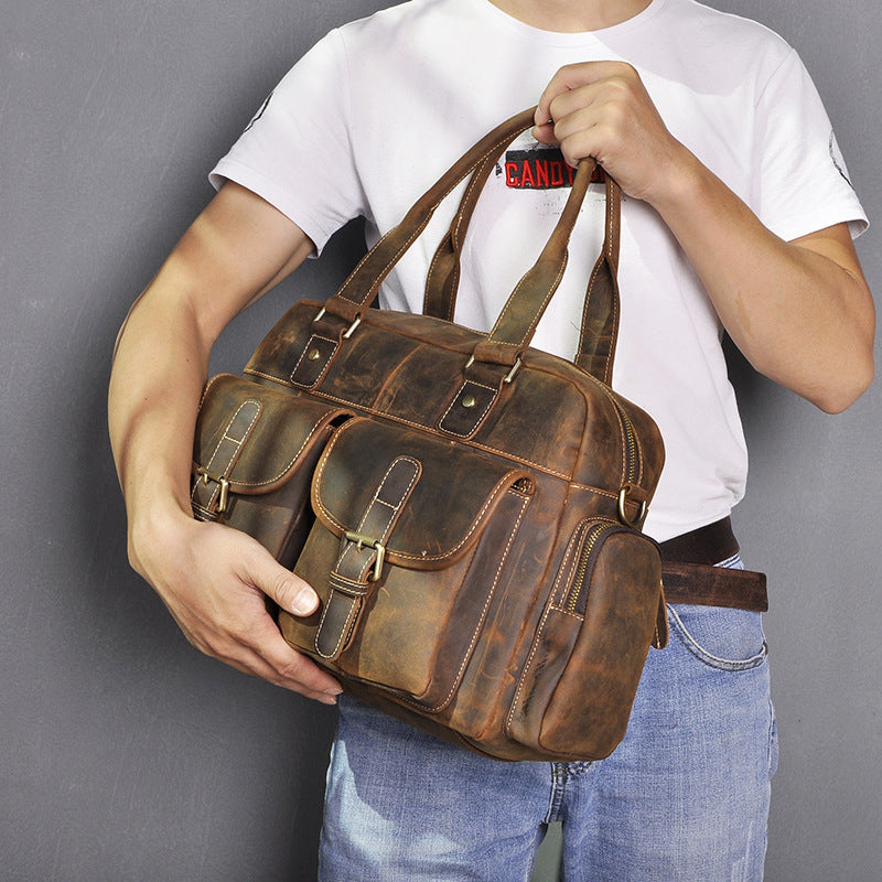 Design: Casual Dark Brown Leather Men's 14 inches Overnight Bag Large Travel Bag Luggage Weekender Bag For MenOverview: