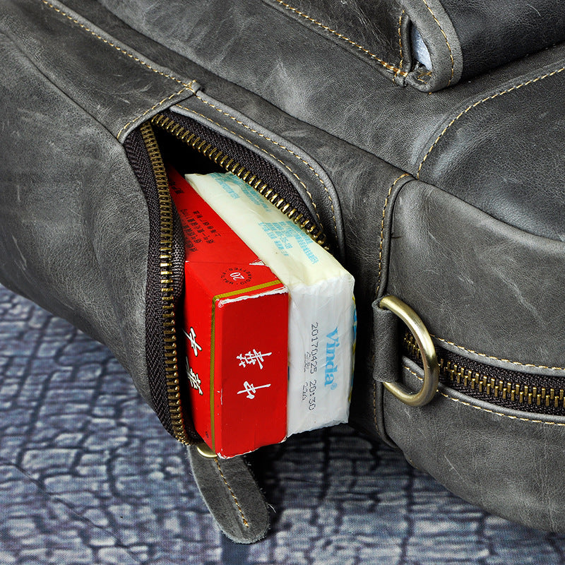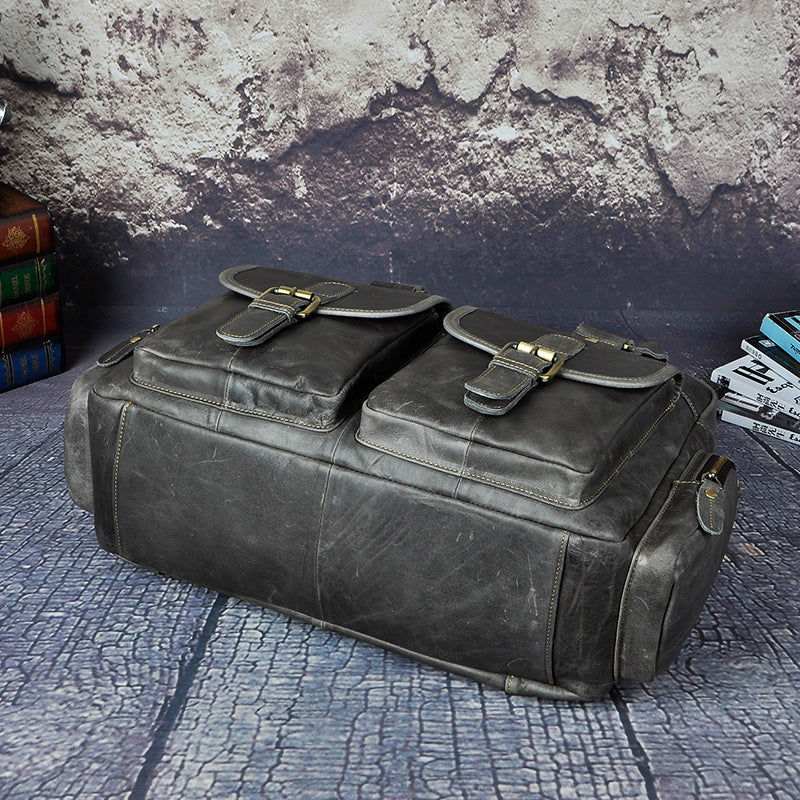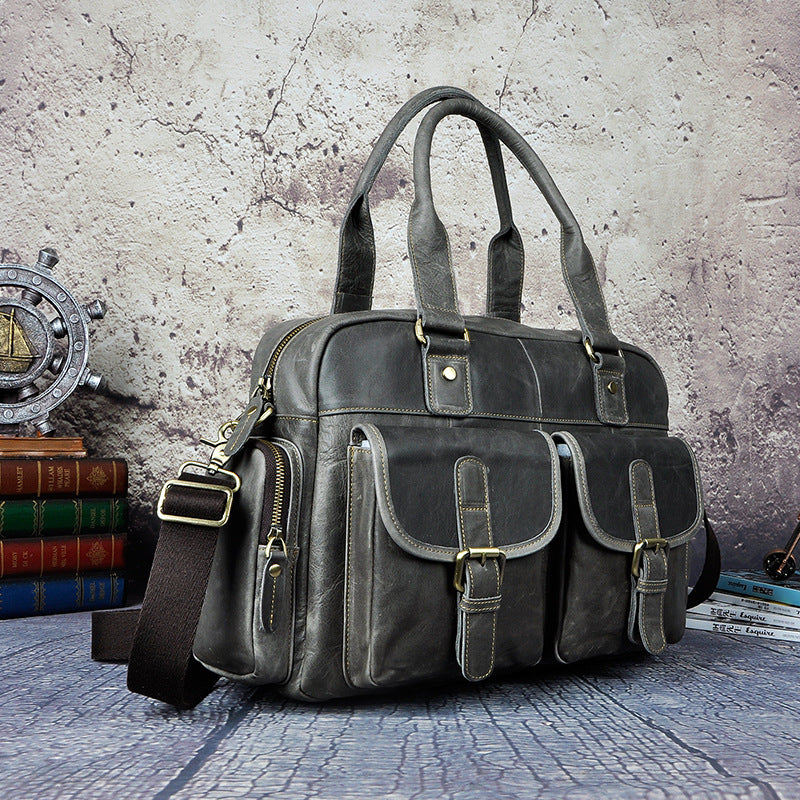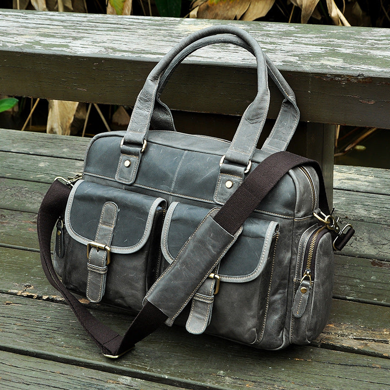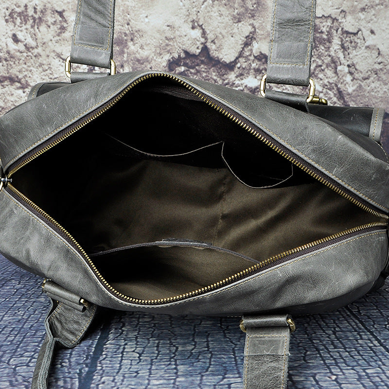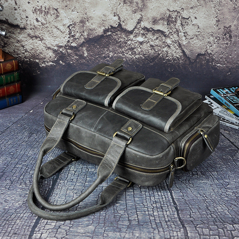 Design: Casual Dark Brown Leather Men's 14 inches Overnight Bag Large Travel Bag Luggage Weekender Bag For MenOverview: