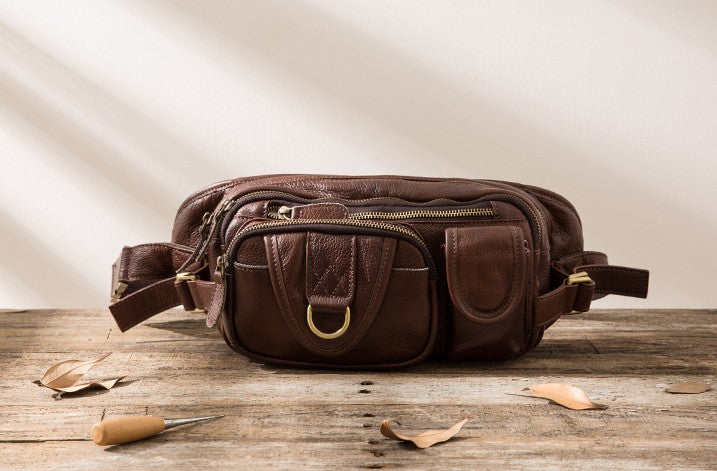 Style: Coffee Cool Leather Fanny Packs Mens Waist Bag Hip Pack Belt Bag for Men