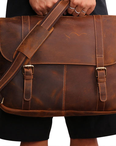 Style: Leather Men Vintage Coffee Messenger Bag Shoulder Bag for Men