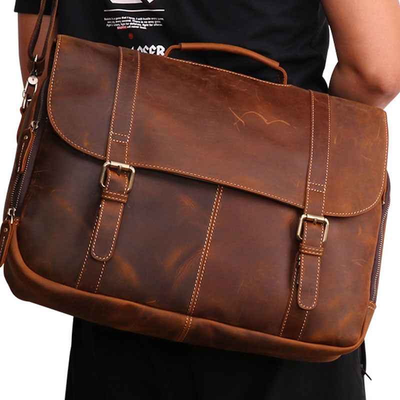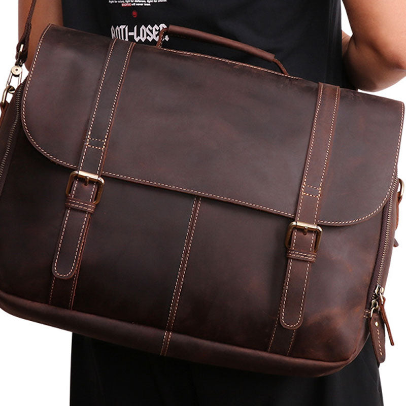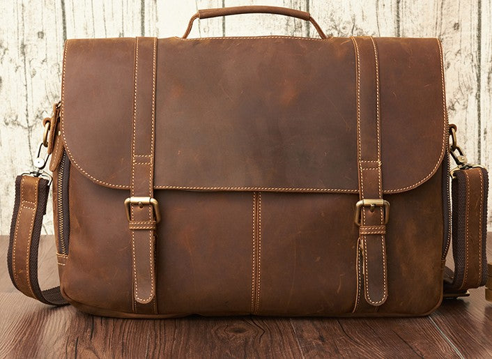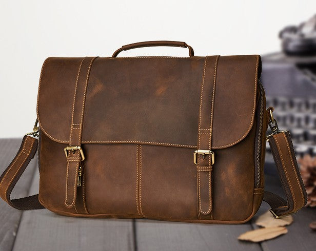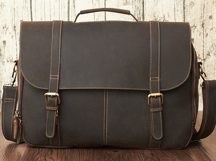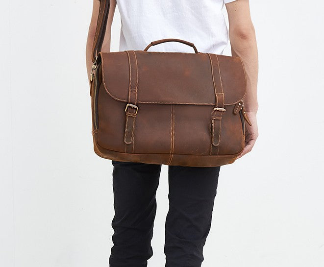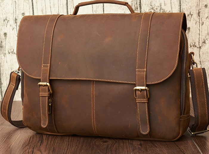 Design: Leather Men Vintage Coffee Messenger Bag Shoulder Bag for Men