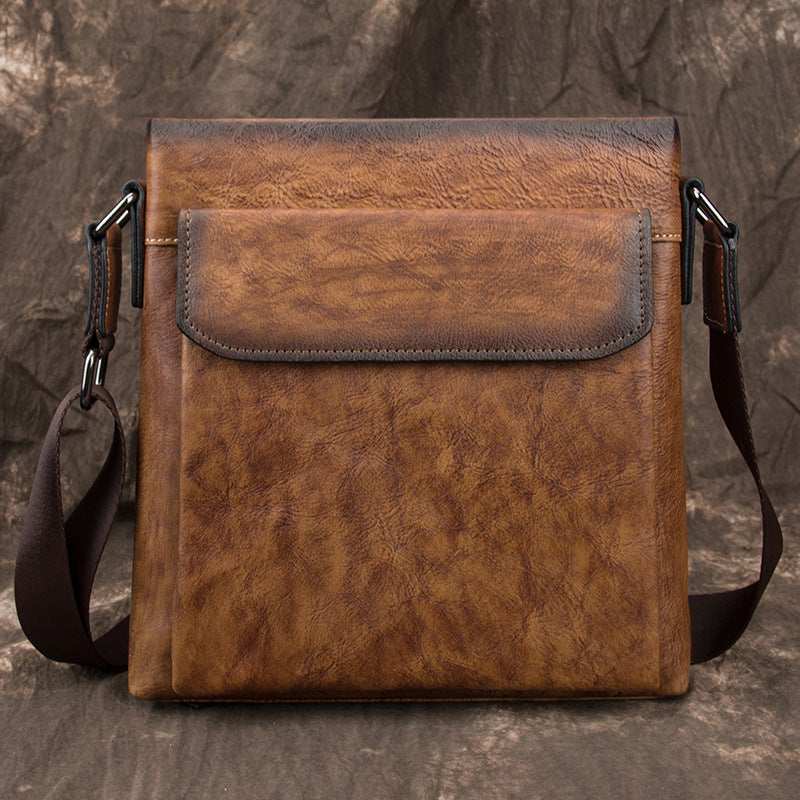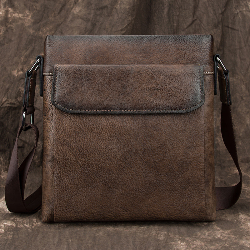 Design: Cool Leather Men's 10 inches Dark Brown Business Messenger Bag Brown Shoulder Bag For Men