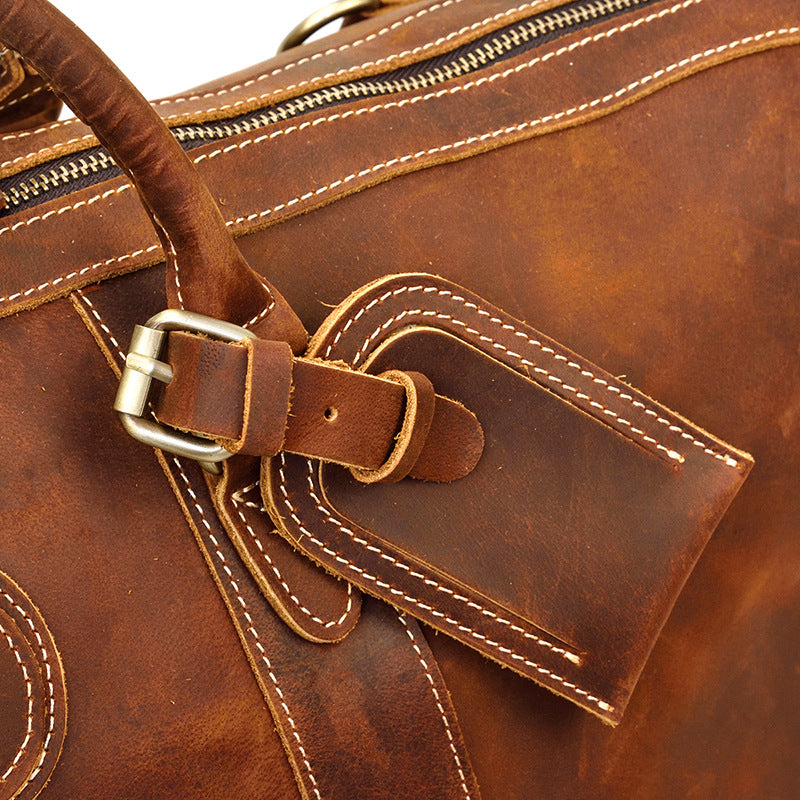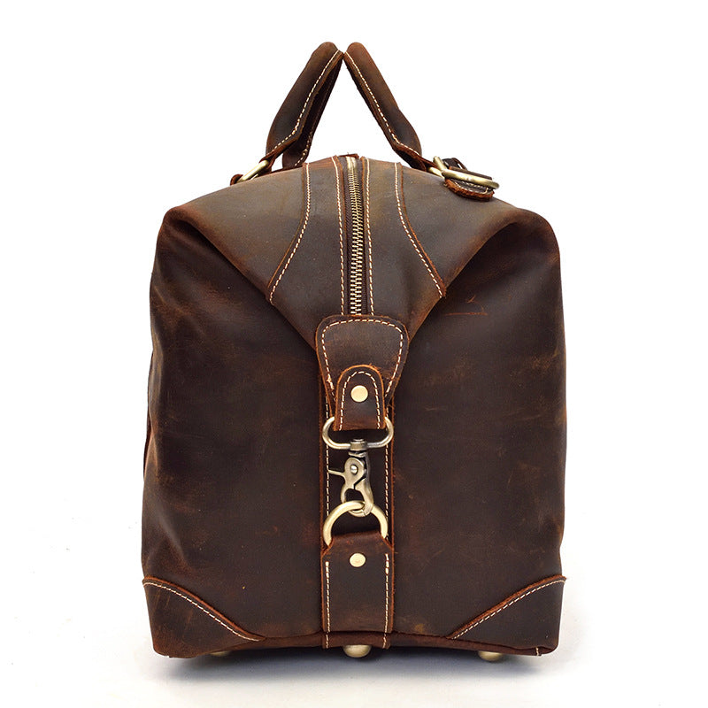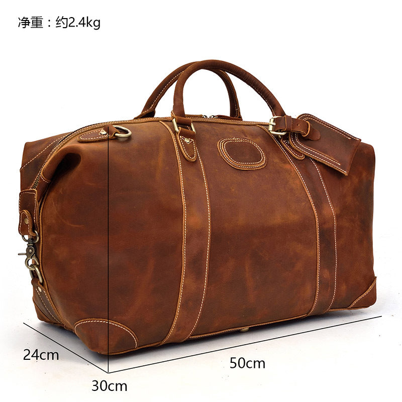 Design: Cool Retro Dark Brown and Brown Leather Men Barrel Overnight Bags Travel Bags Weekender Bags For Men