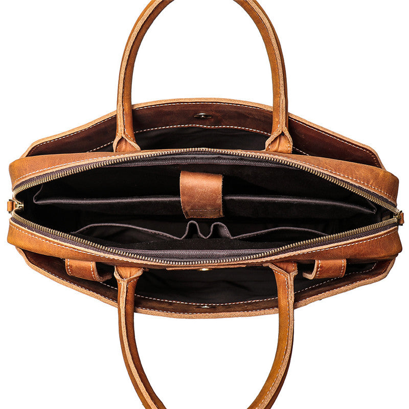 Design: Vintage Brown Leather Men's Professional Briefcase 15‘’ Computer Briefcase Handbag For Men