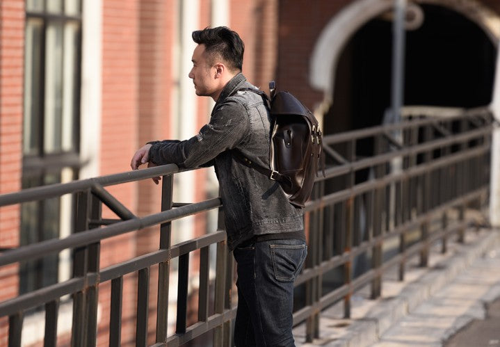 Style: Handmade Leather Mens Cool Backpack Sling Bag Large Black Travel Bag Hiking Bag for men