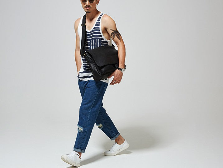 Style: Handmade Leather Mens Cool Shoulder Bag Messenger Bag Chest Bag Bike Bag Cycling Bag for men