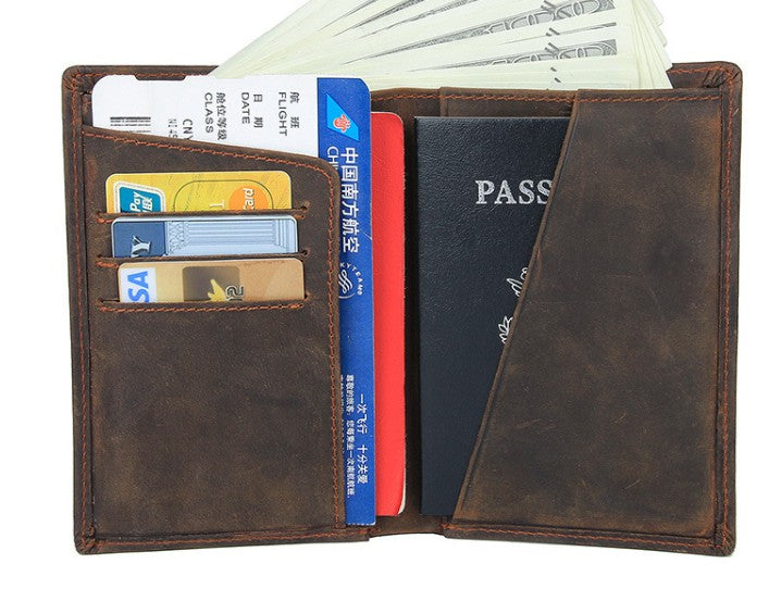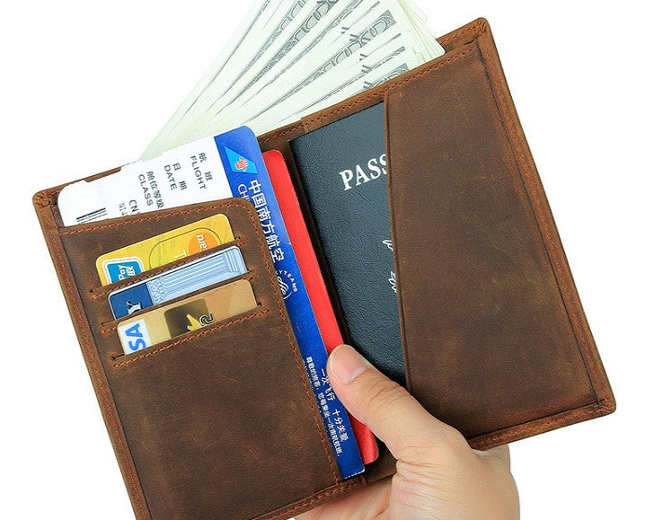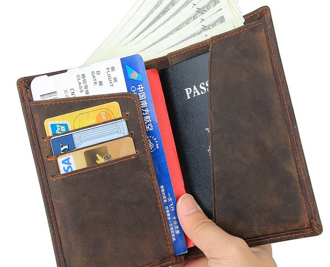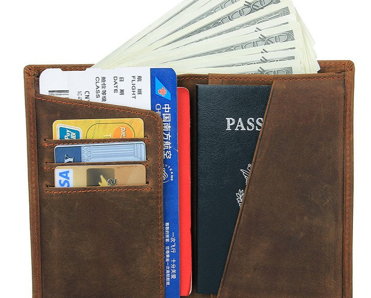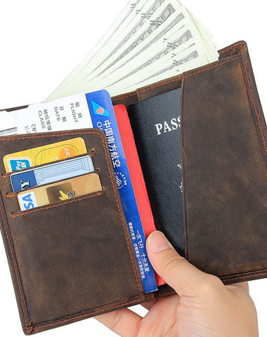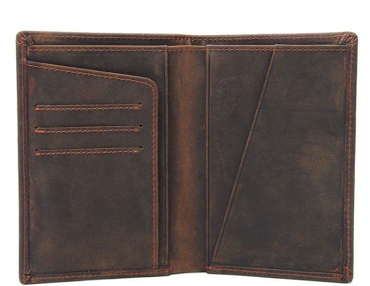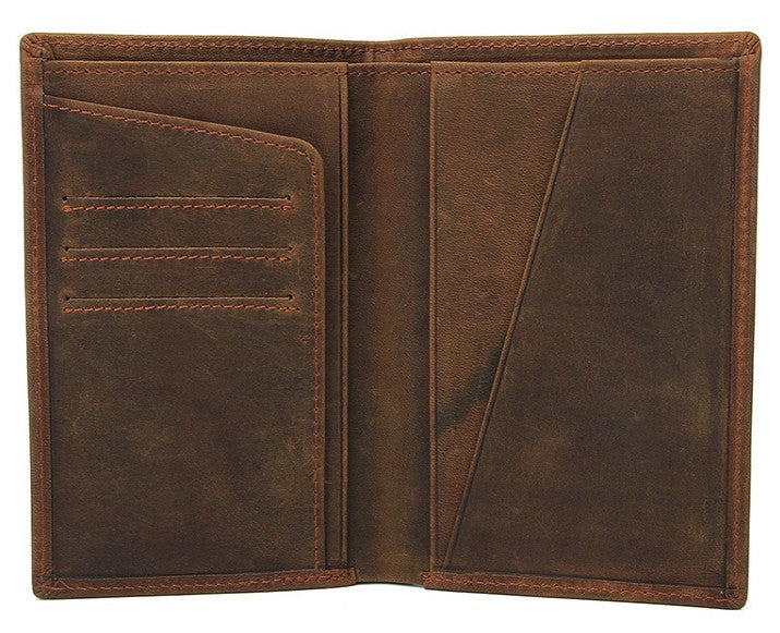 Style: Handmade Mens Leather Small Slim Passport Wallet Vintage Bifold Long Wallet For Men