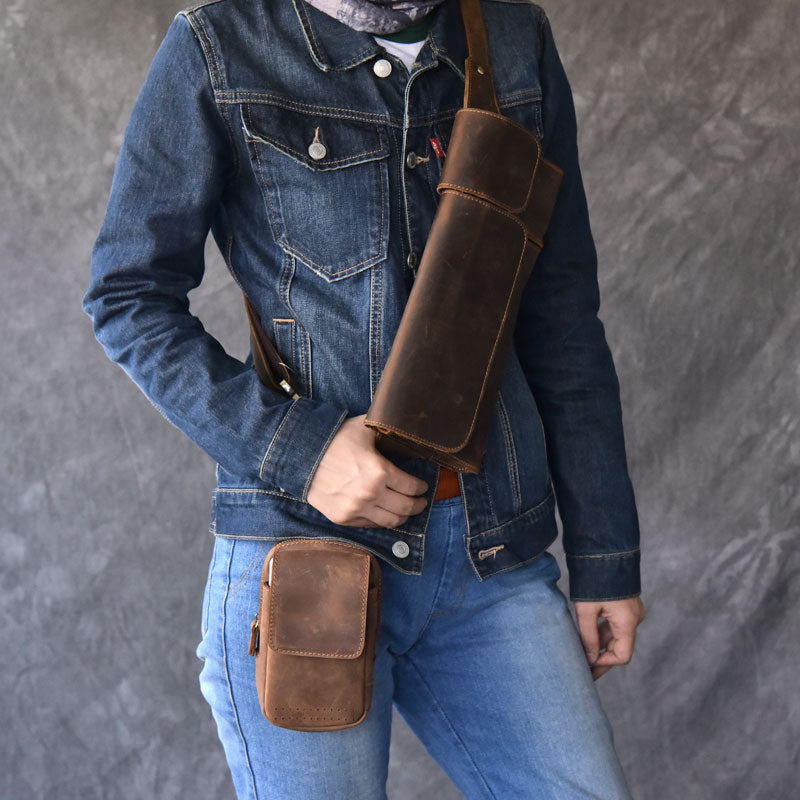 Style: Handmade Vintage Leather Fanny Pack Mens Waist Bag Hip Pack Belt Bag for Men