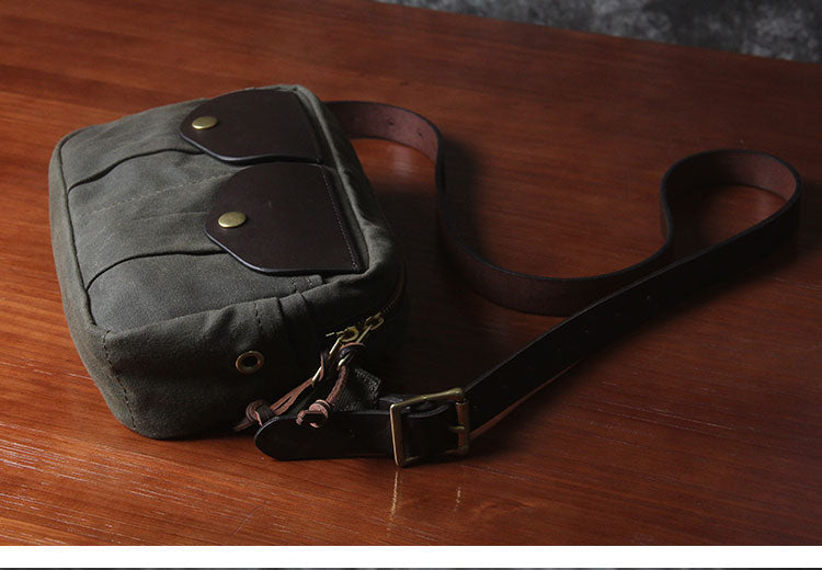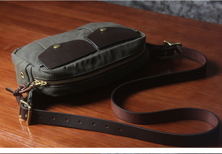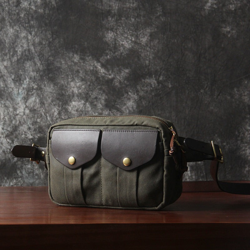 Design:  Leather&Canvas Men Fanny Pack Waist Bag Canvas Hip Pack Bum Pack For Men
