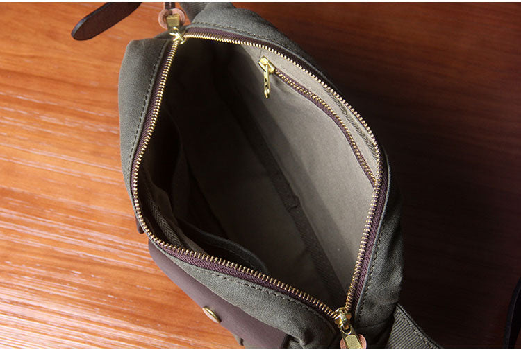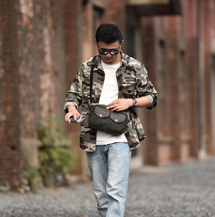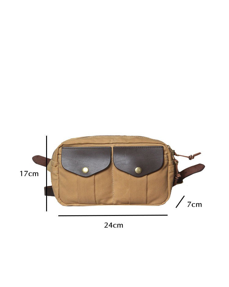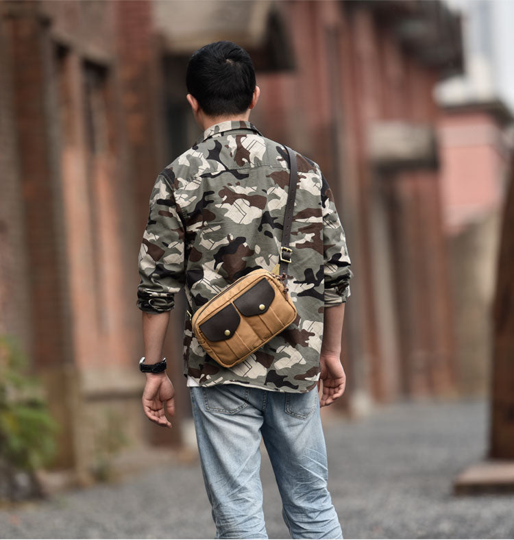 Khaki Leather&Canvas Men Fanny Pack Waist Bags Canvas Hip Pack Bum Pack For Men