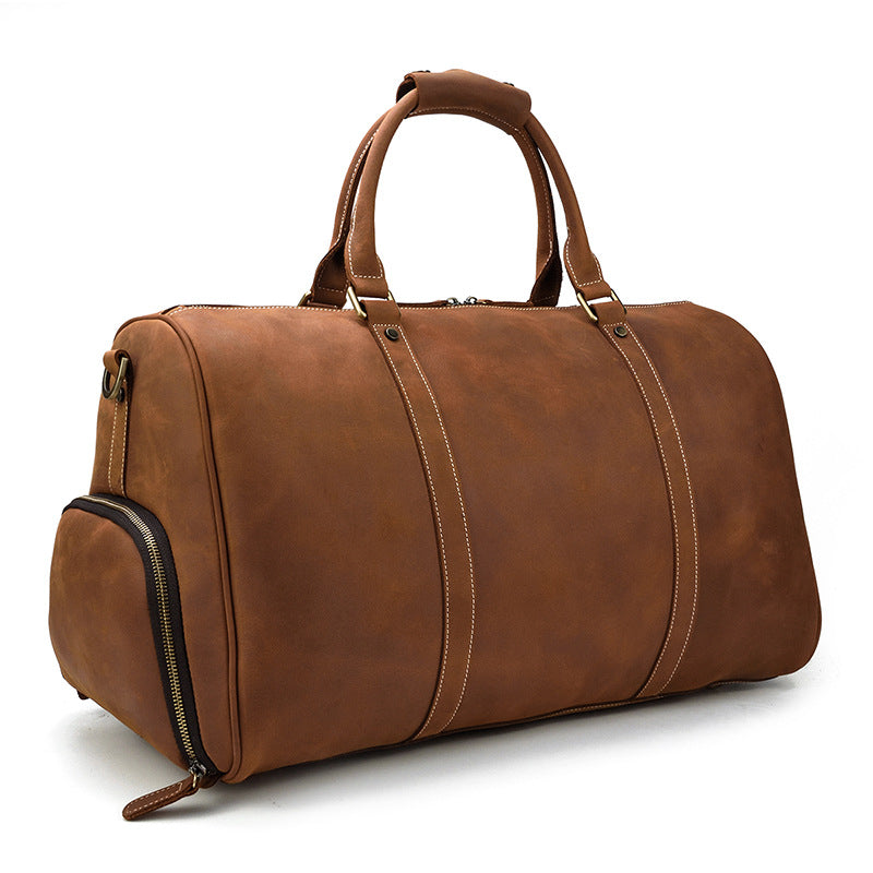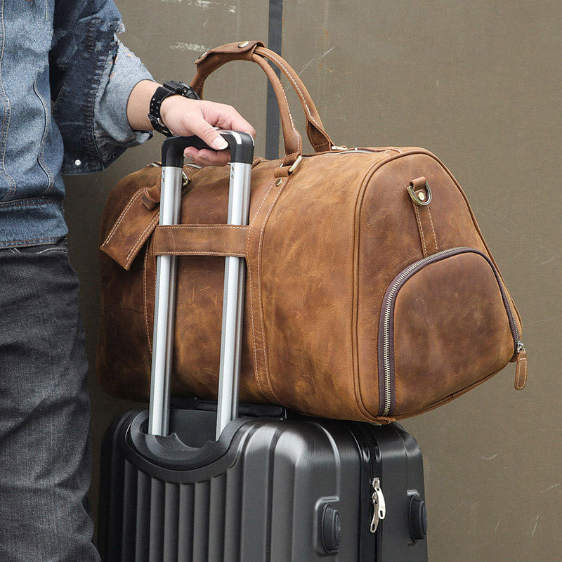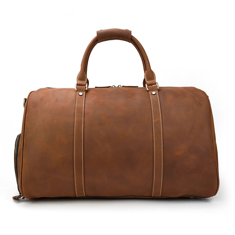 Style: Vintage Brown Leather Men's Overnight Bag Weekender Bag Brown Travel Bag Handbag For Men