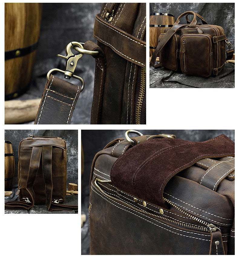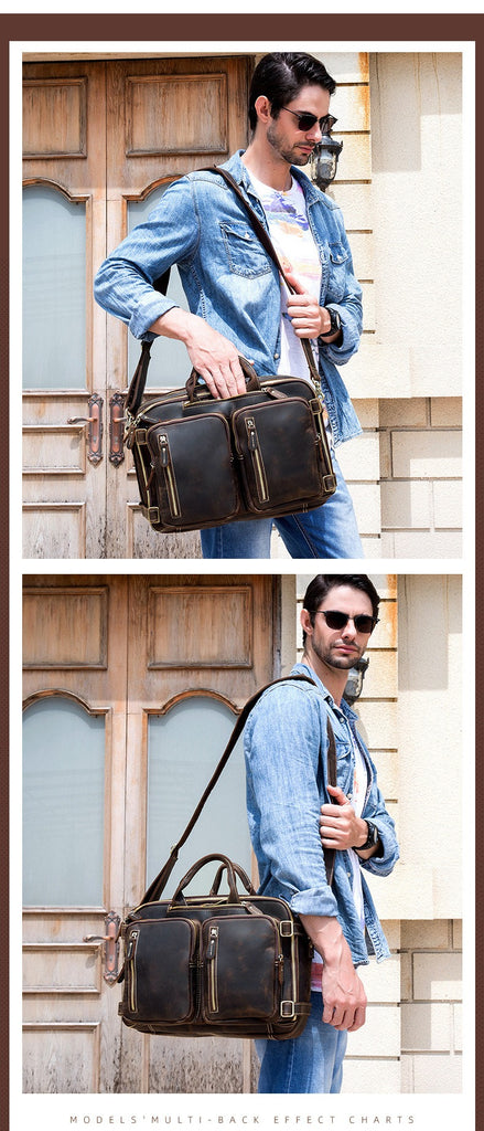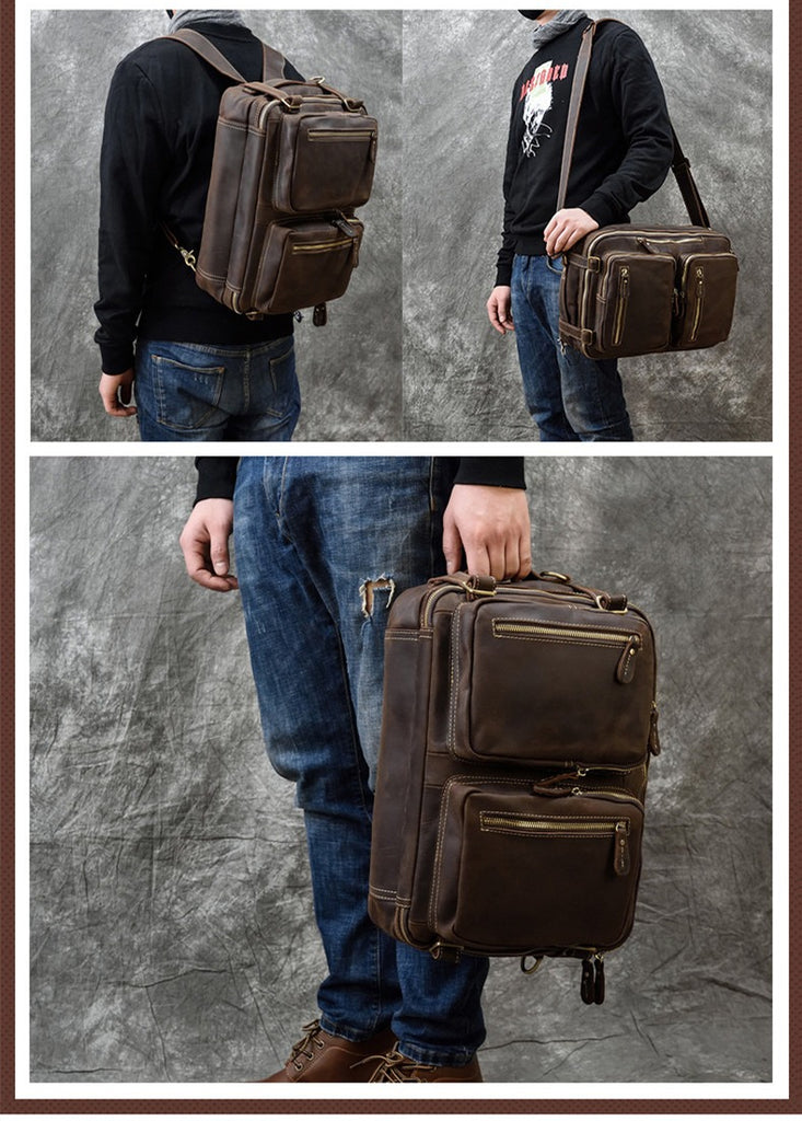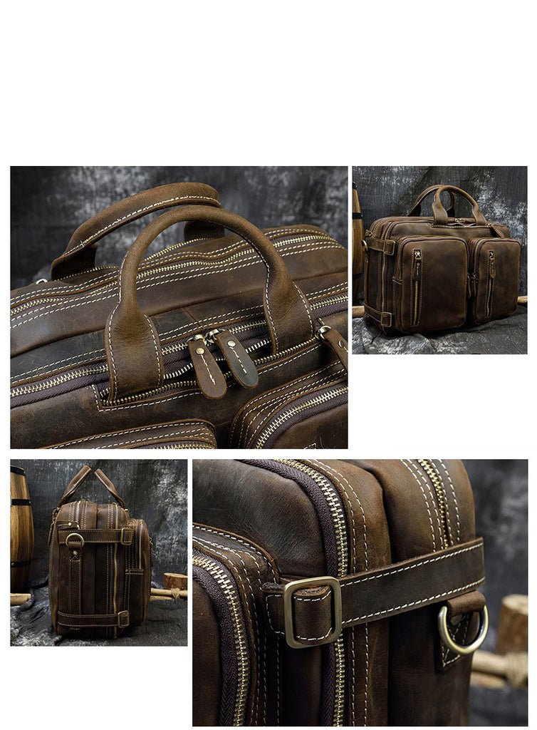 Design: Large Leather Mens Briefcase Convertible Backpack Travel Briefcase 14‘’ Laptop Travel Briefcase For Men