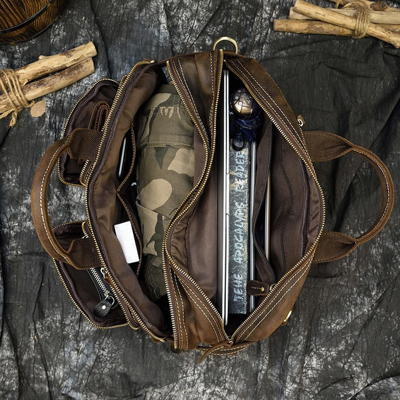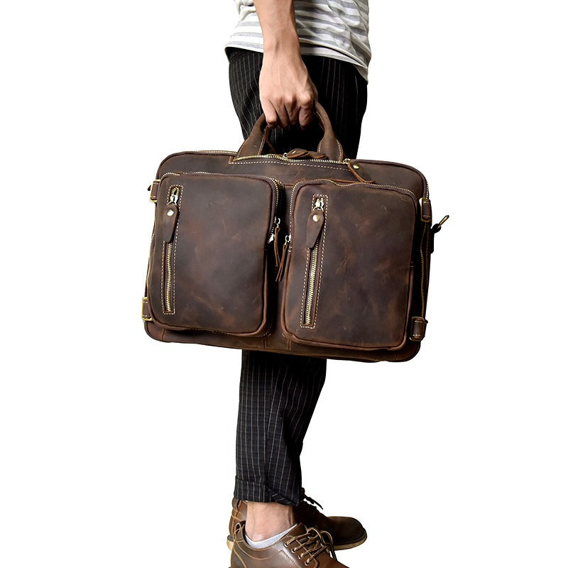 Style: Large Leather Mens Briefcase Convertible Backpack Travel Briefcase 14‘’ Laptop Travel Briefcase For Men