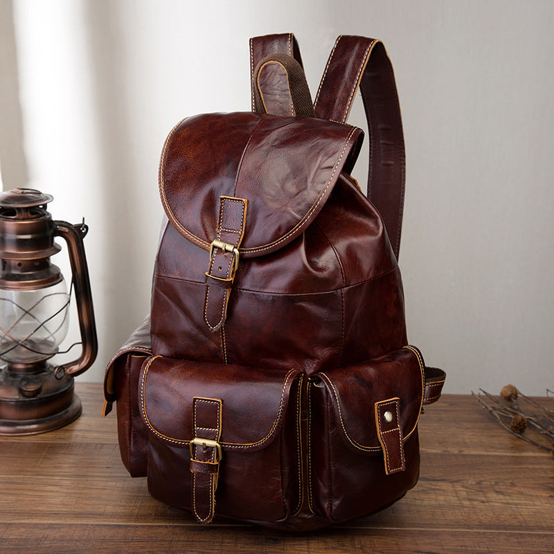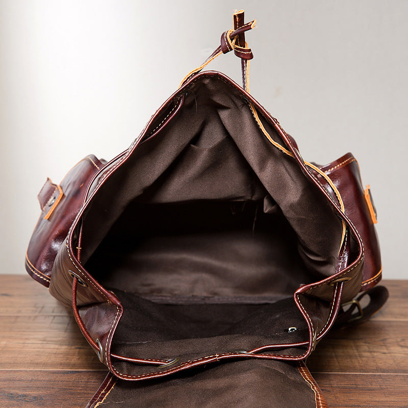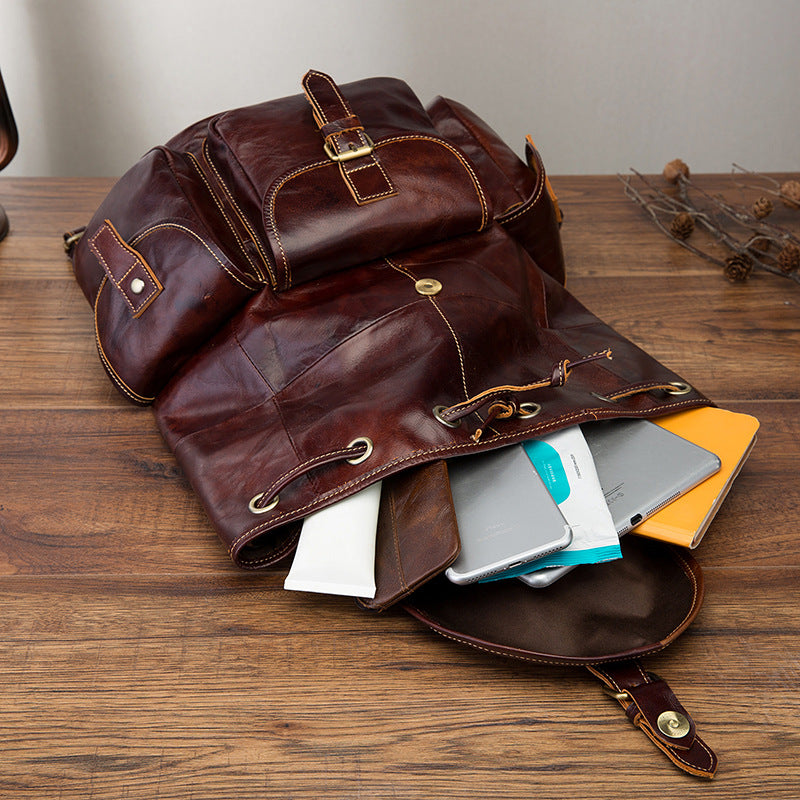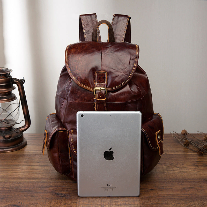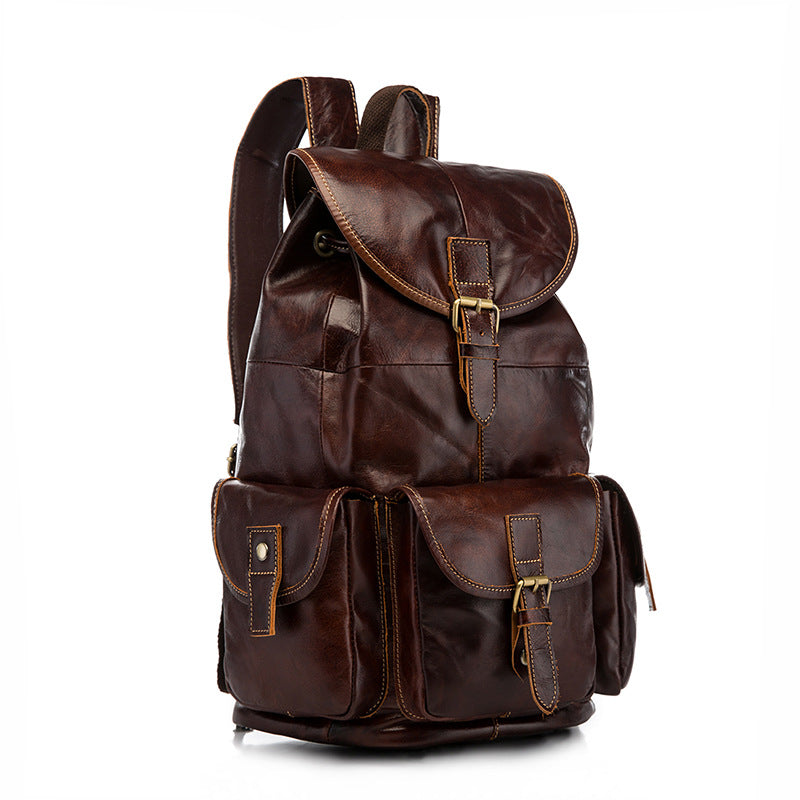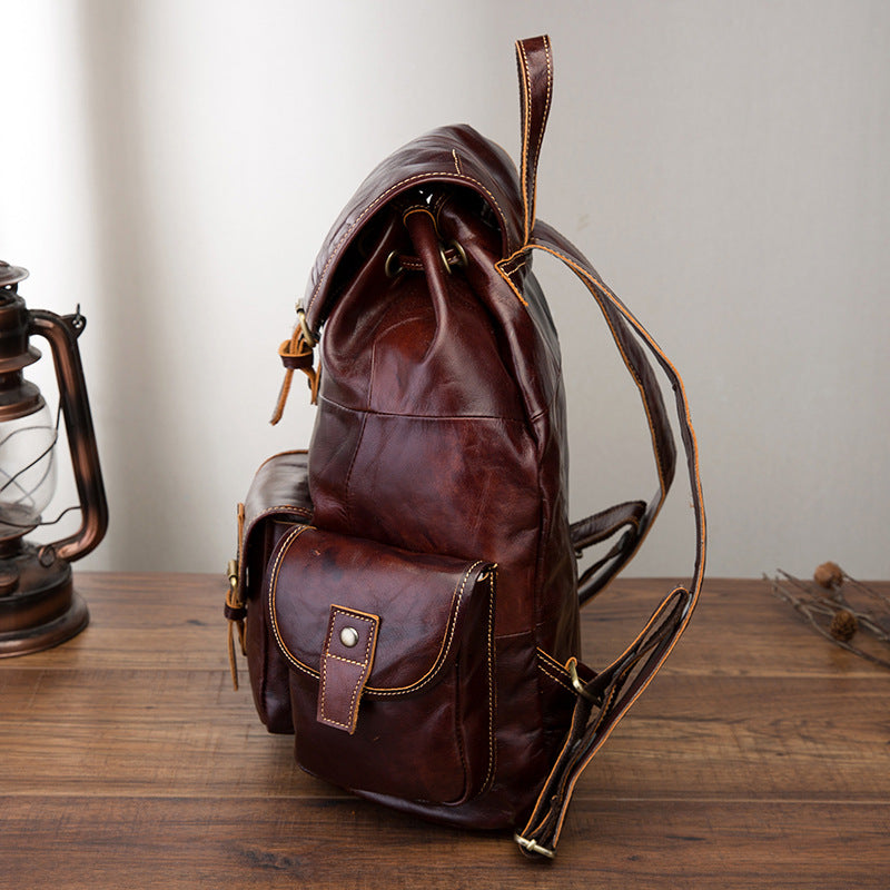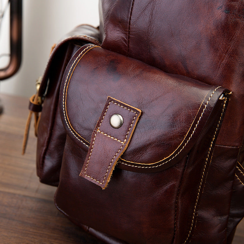 Design: Vintage Brown Leather Men's Backpack 14'' Computer Backpacks Travel Backpack For MenOverview: