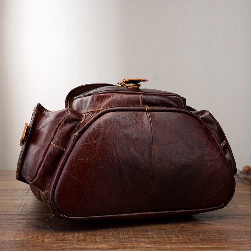 Design: Vintage Brown Leather Men's Backpack 14'' Computer Backpacks Travel Backpack For Men