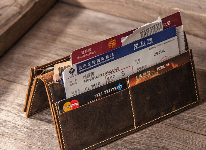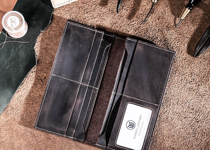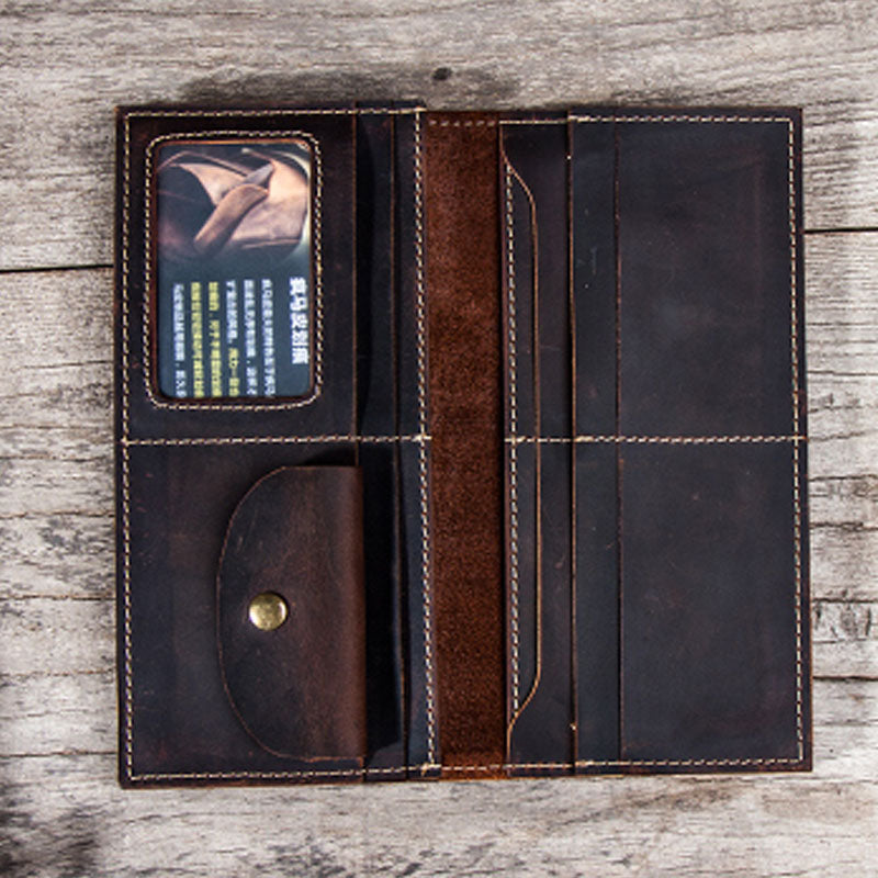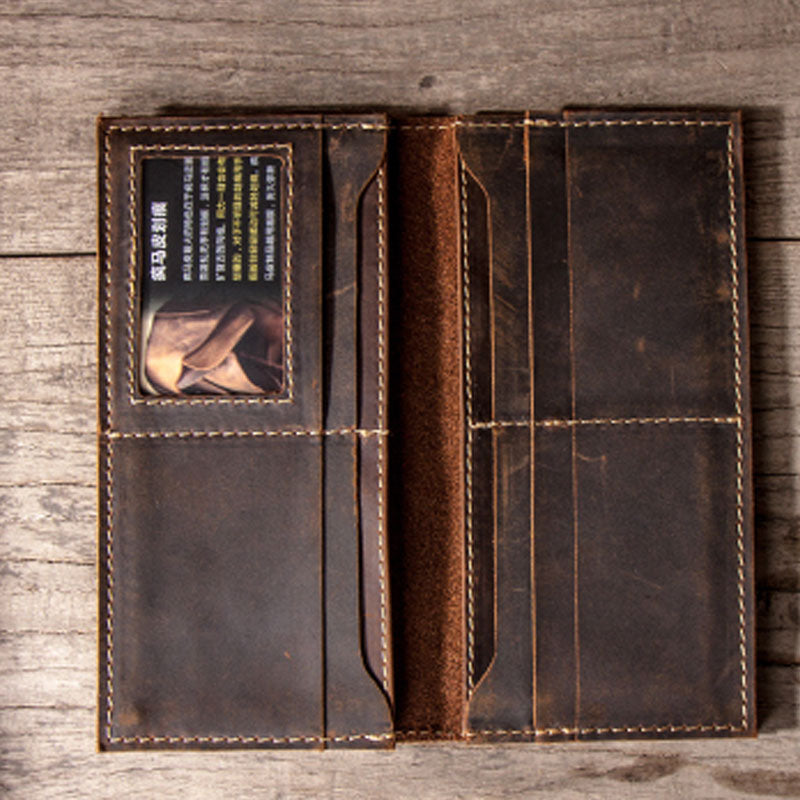 Design: Leather Long Wallets for men Bifold Vintage Men Long Wallet