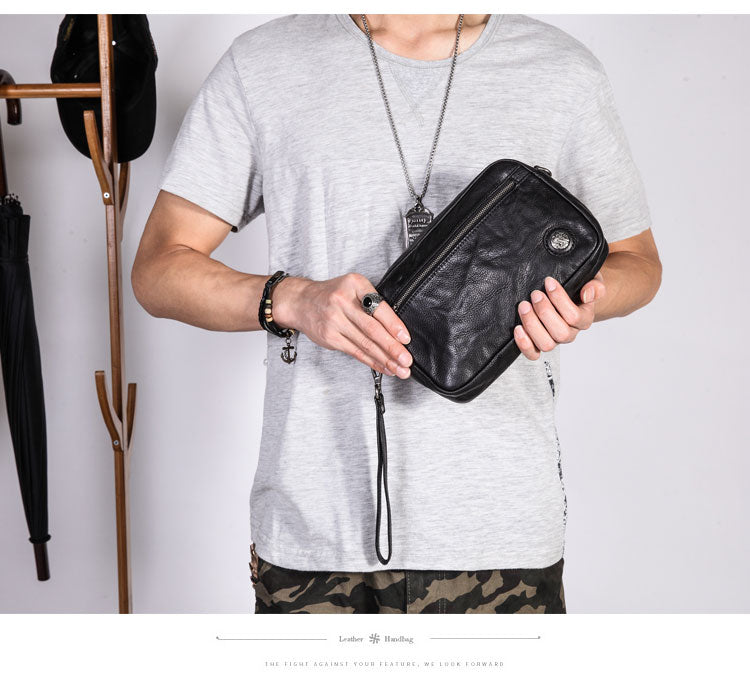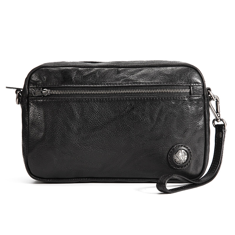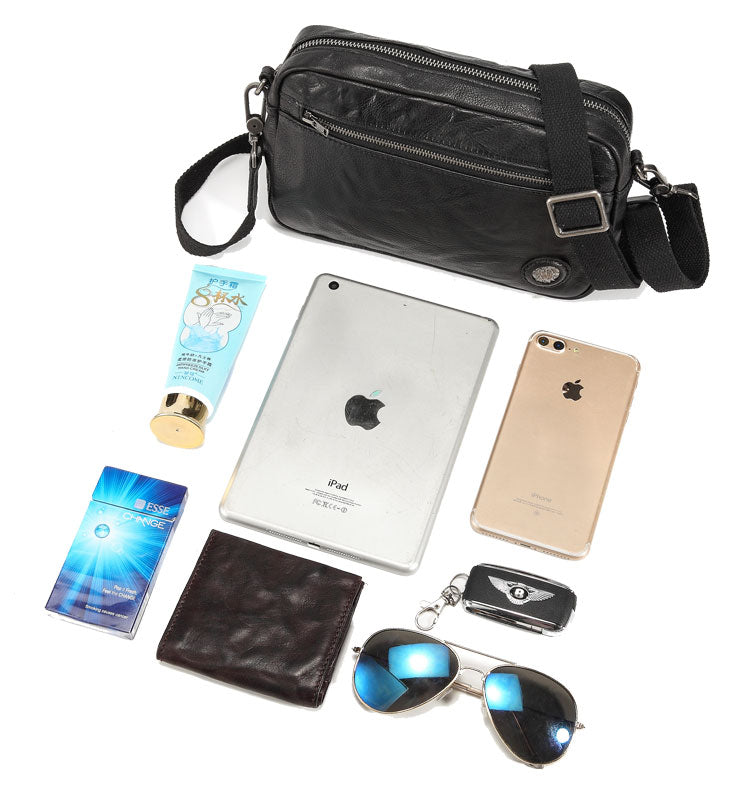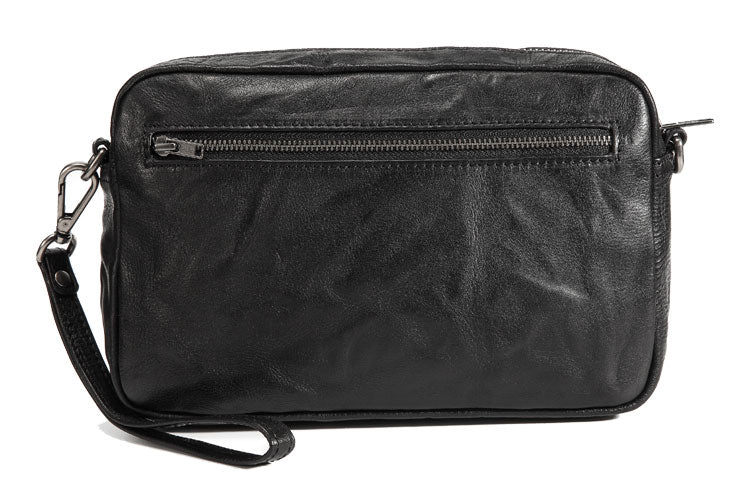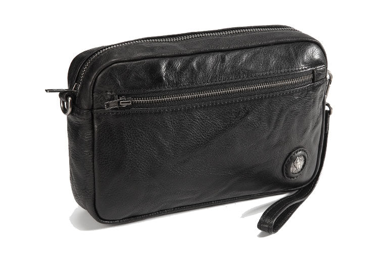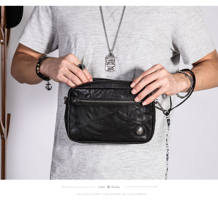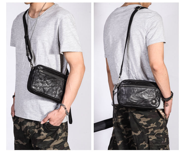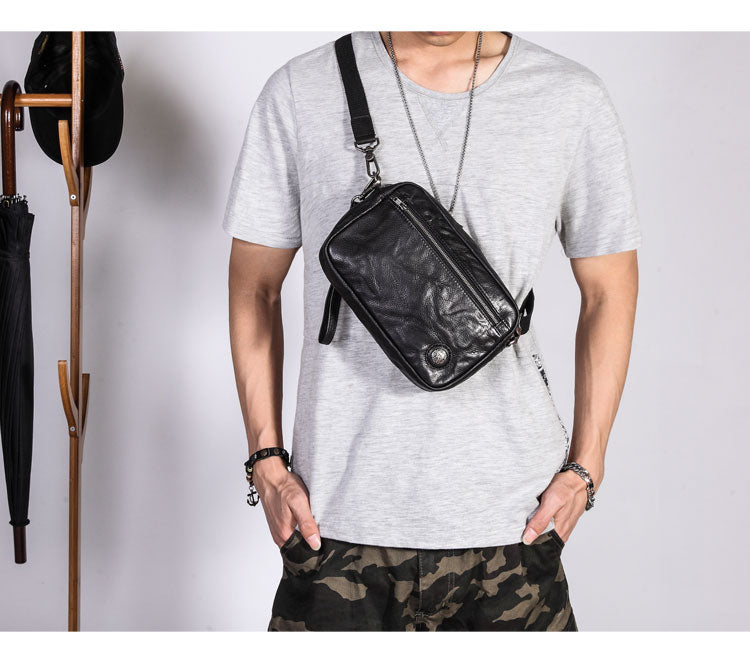 Design: Leather Sling Bag Mens Wristlet Bag Crossbody Bag Black Travel Sling Pack For Men