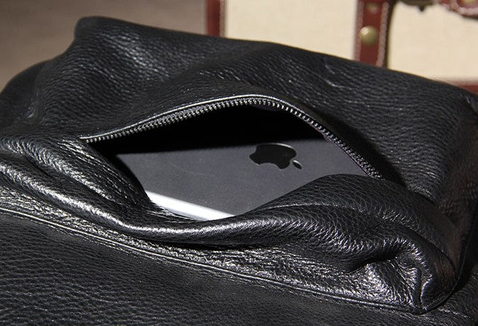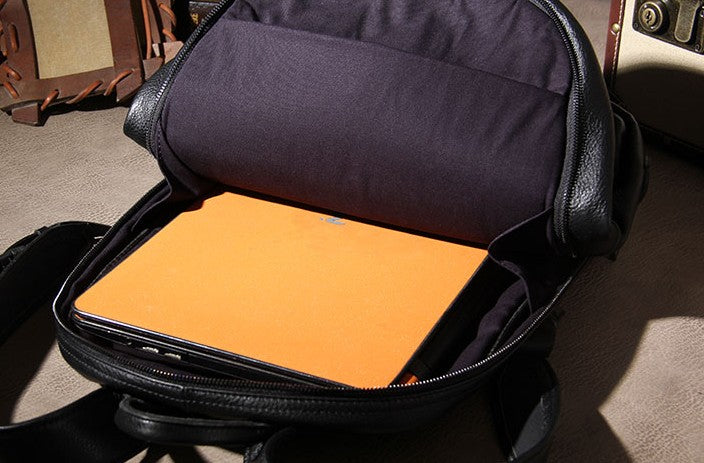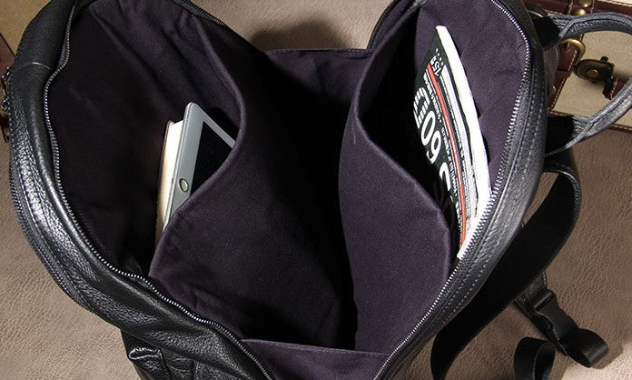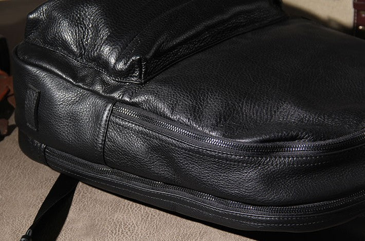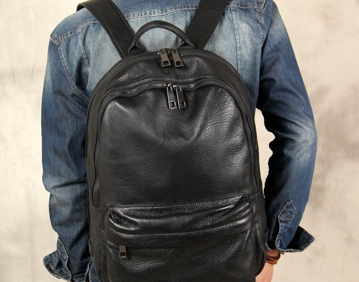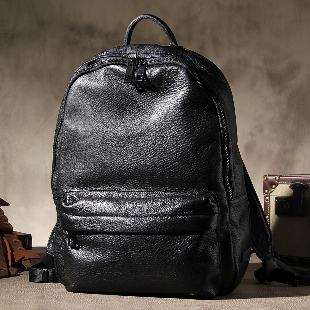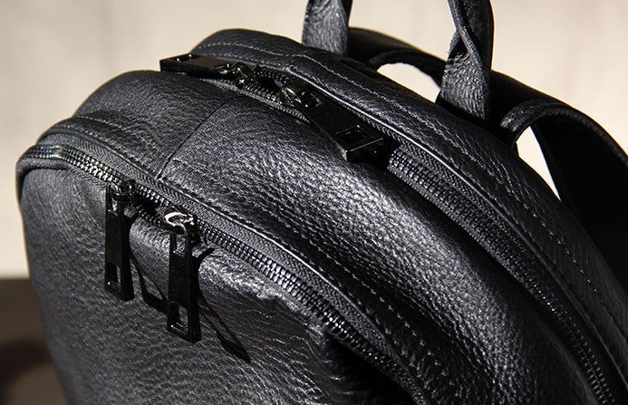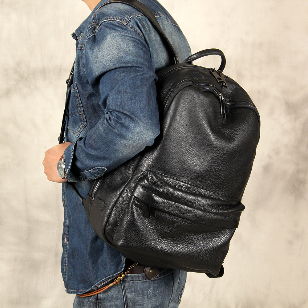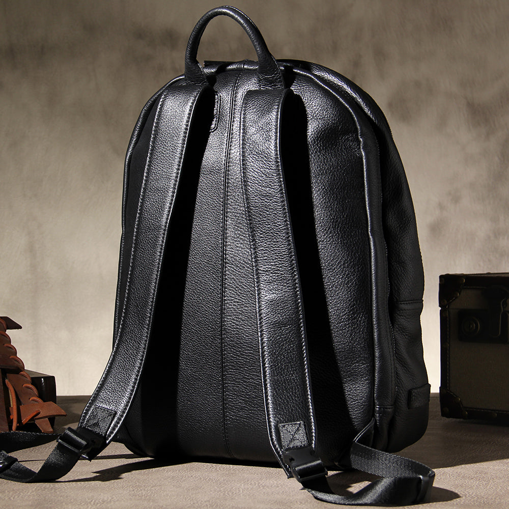 Design: Mens Cool Leather Backpack Black Travel Bag School Bag for Men
