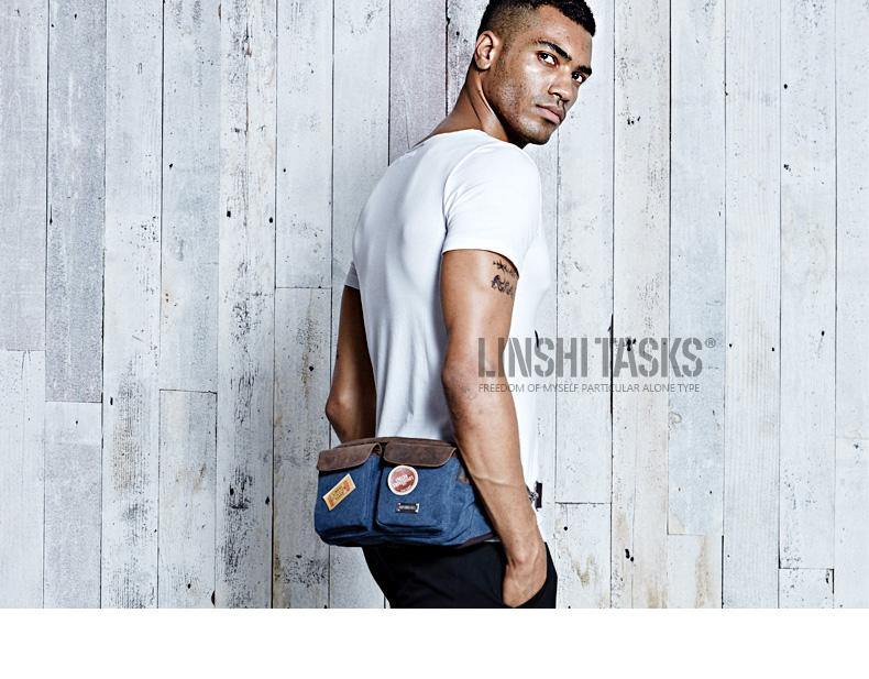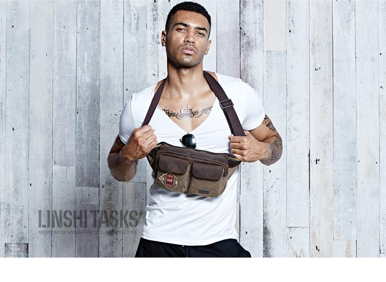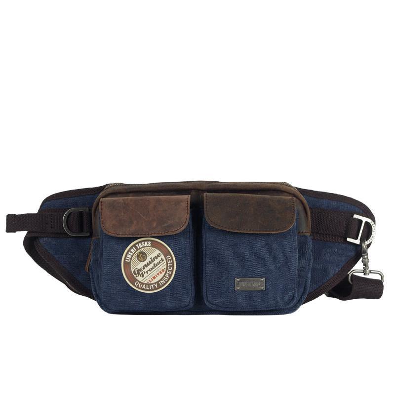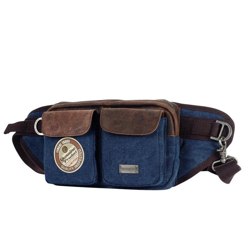 Style: Navy Blue Canvas Leather Fanny Pack Men's Brown Chest Bag Sling Hip Bag Waist Bag For Men