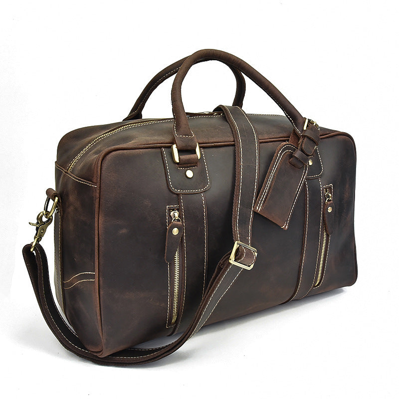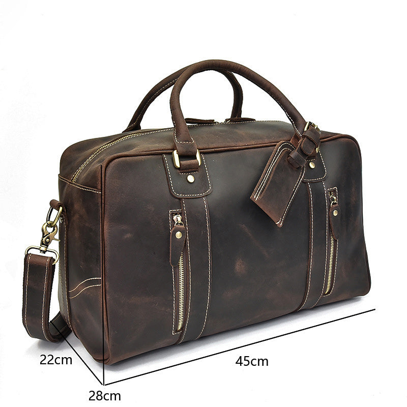 Design: Casual Brown Leather Men's Overnight Bag Travel Bag Luggage Weekender Bag For MenOverview: