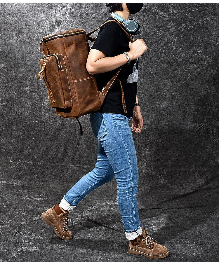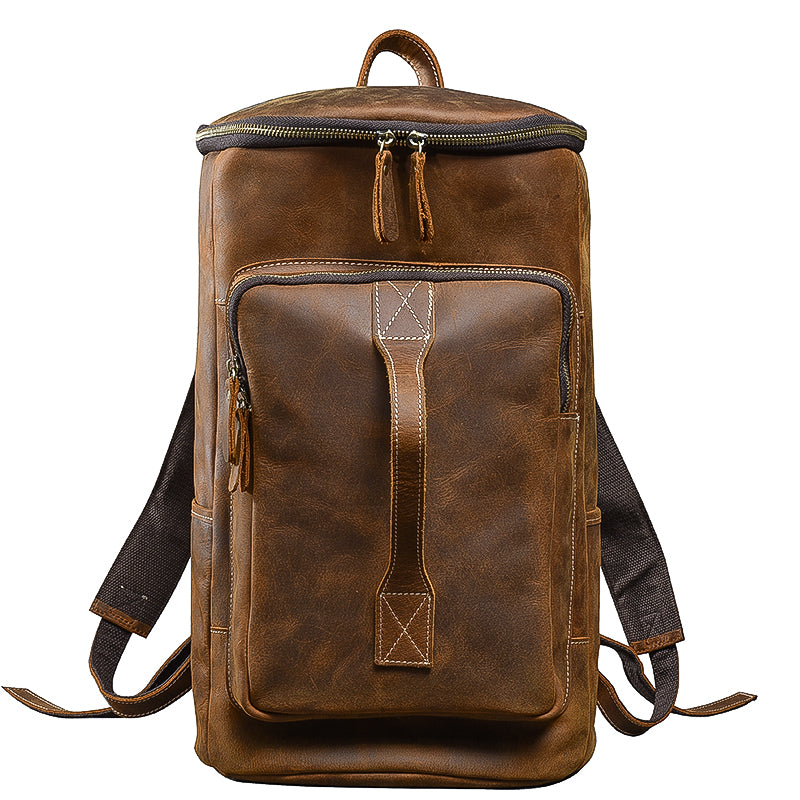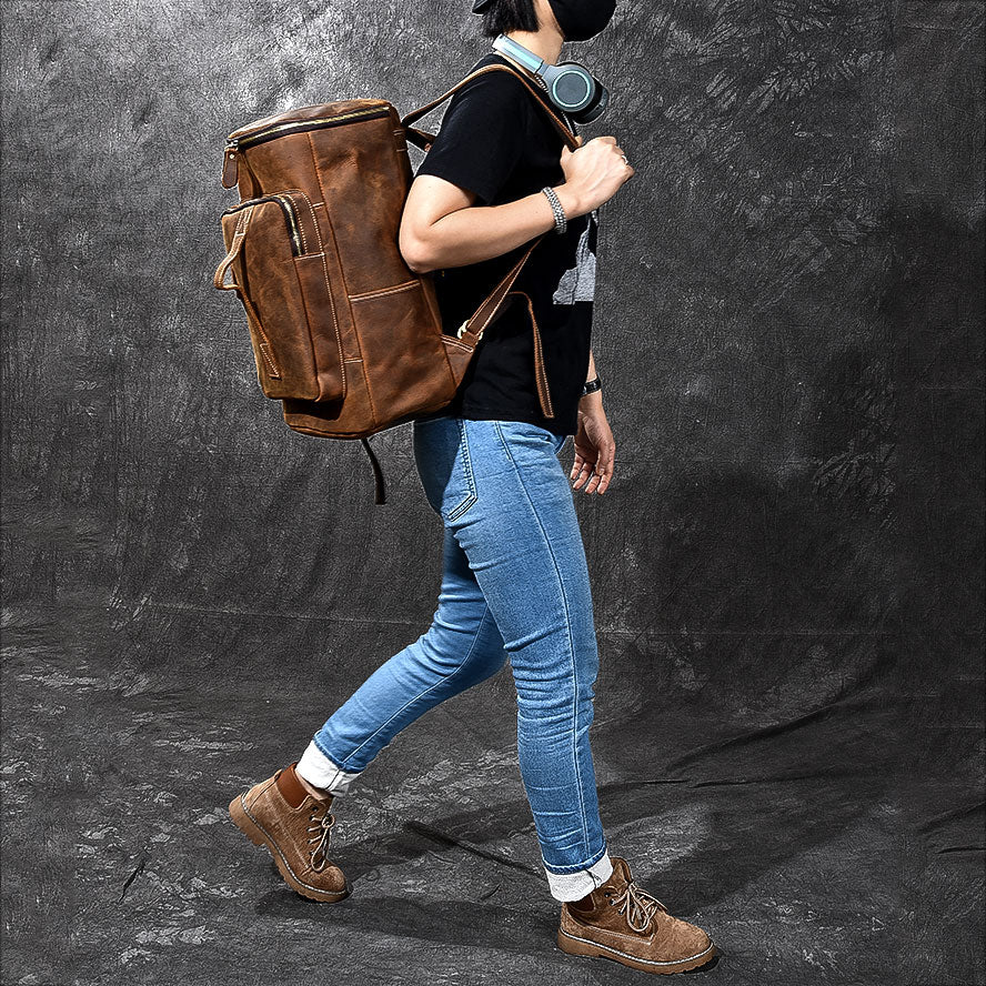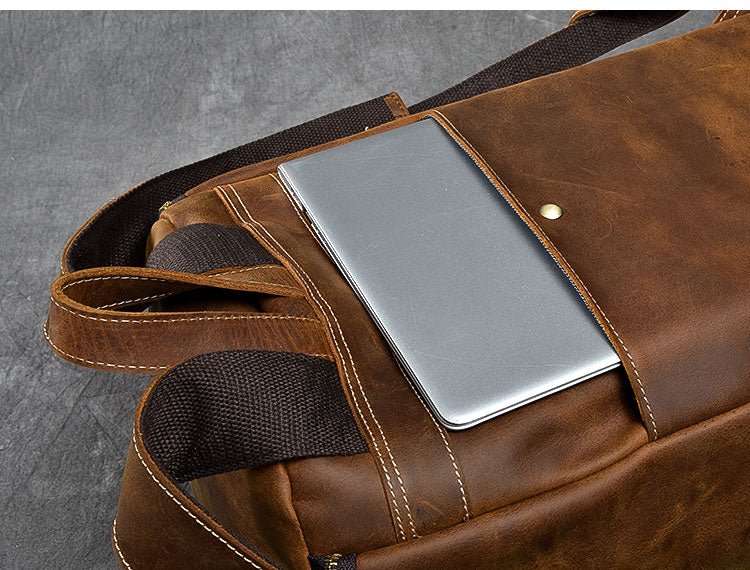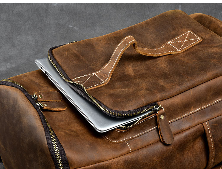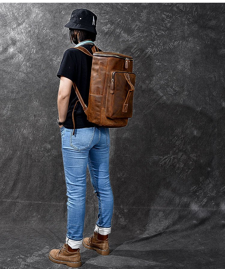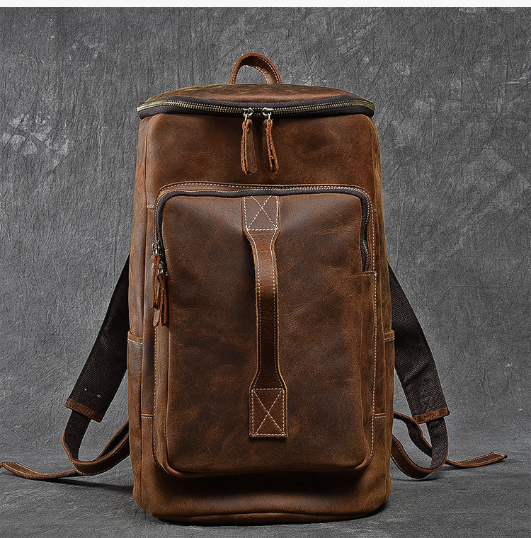 Design: Retro Brown Leather Mens 14" Laptop Backpack Hiking Backpack Travel Backpack Large Backpack for Men