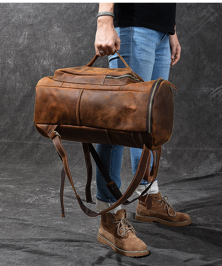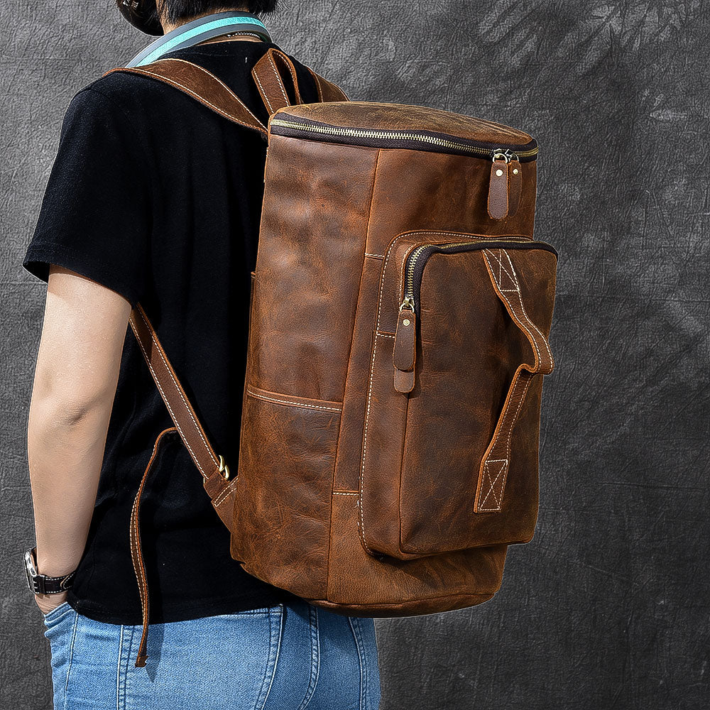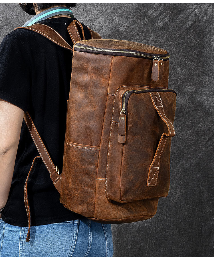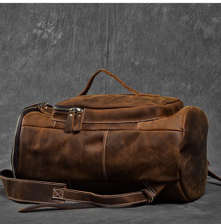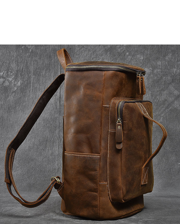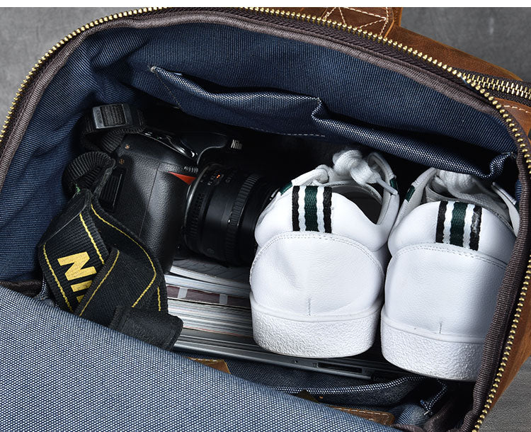 Design: Retro Brown Leather Mens 14" Laptop Backpack Hiking Backpack Travel Backpack Large Backpack for Men