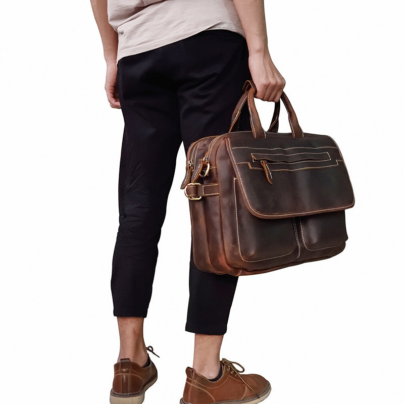 Design: Cool Retro Leather Briefcase Handbag Work Bag Business Bag Shoulder Bags For Men