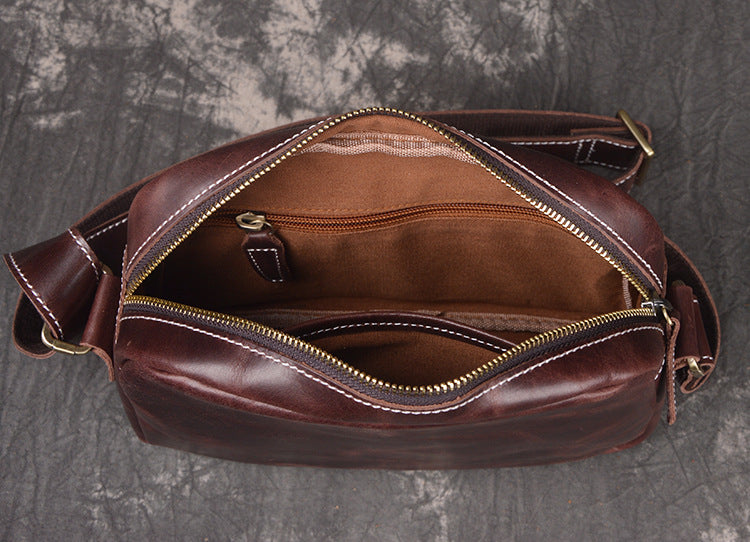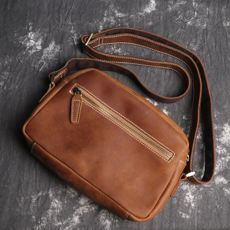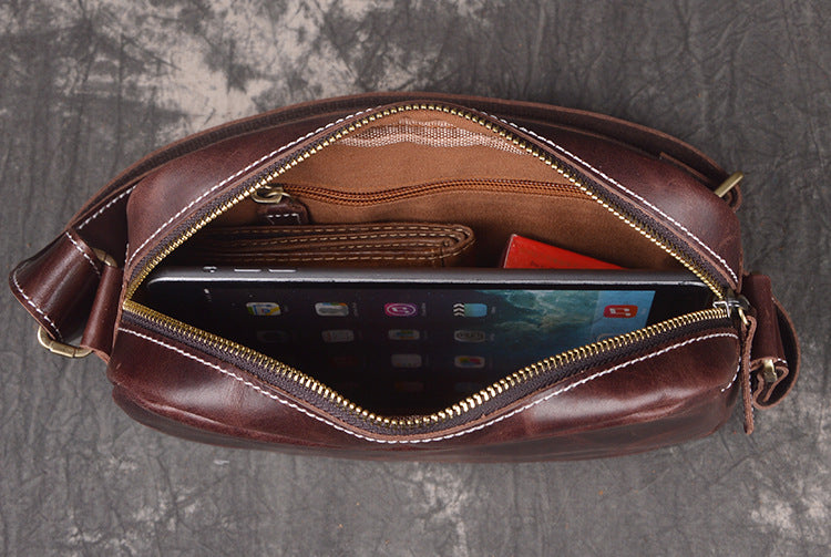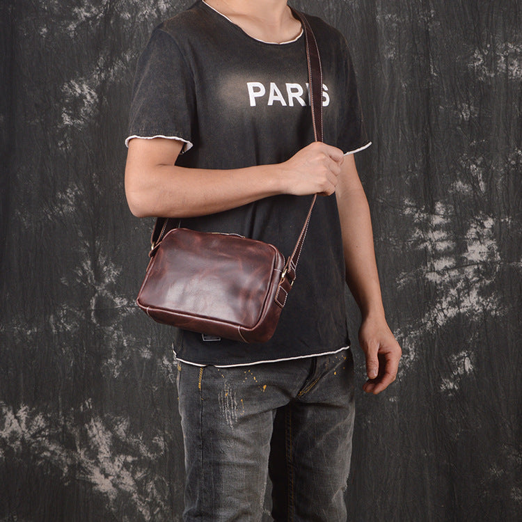 Design: Vintage Small Brown Leather Men's Side Bag Black Courier Bag Messenger Bag For MenOverview: