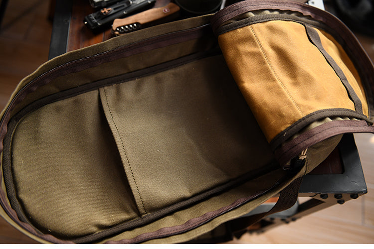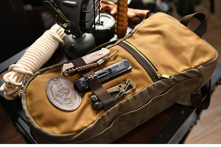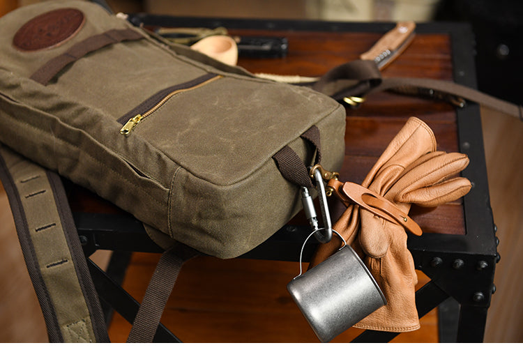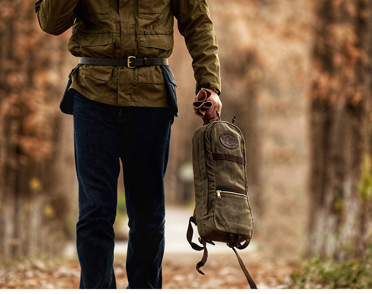 The Canvas Men's Waterproof Slim Backpack is a versatile and stylish accessory designed for the modern adventurer. Available in two rugged colors, khaki and army green, this waxed canvas backpack combines functionality with a sleek, slim profile, making it an ideal choice for both travel and hiking.