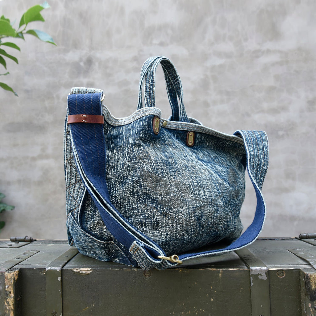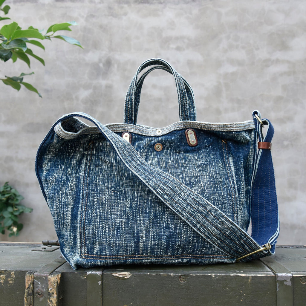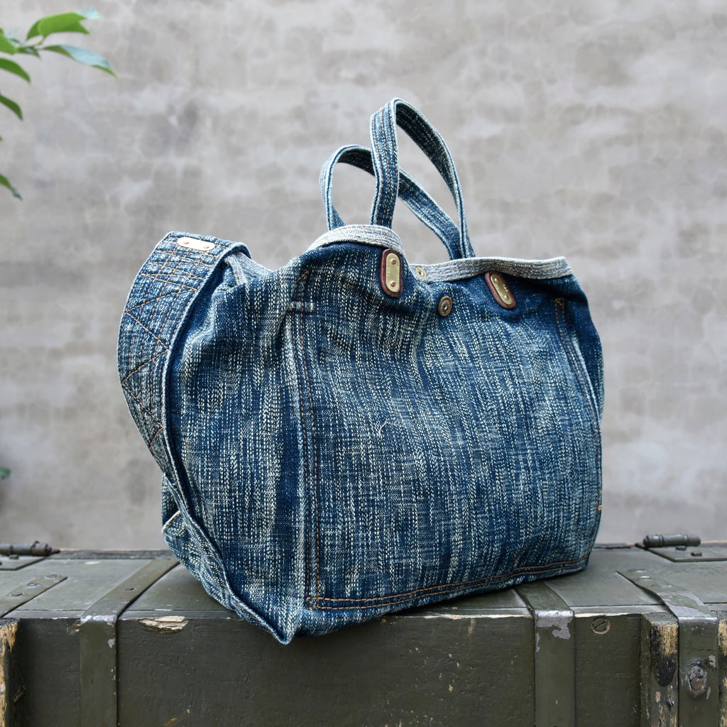 Design: Blue Denim Tote Handbag Washed Denim Tote Bag Stone Washed Denim Tote Shoulder Bag