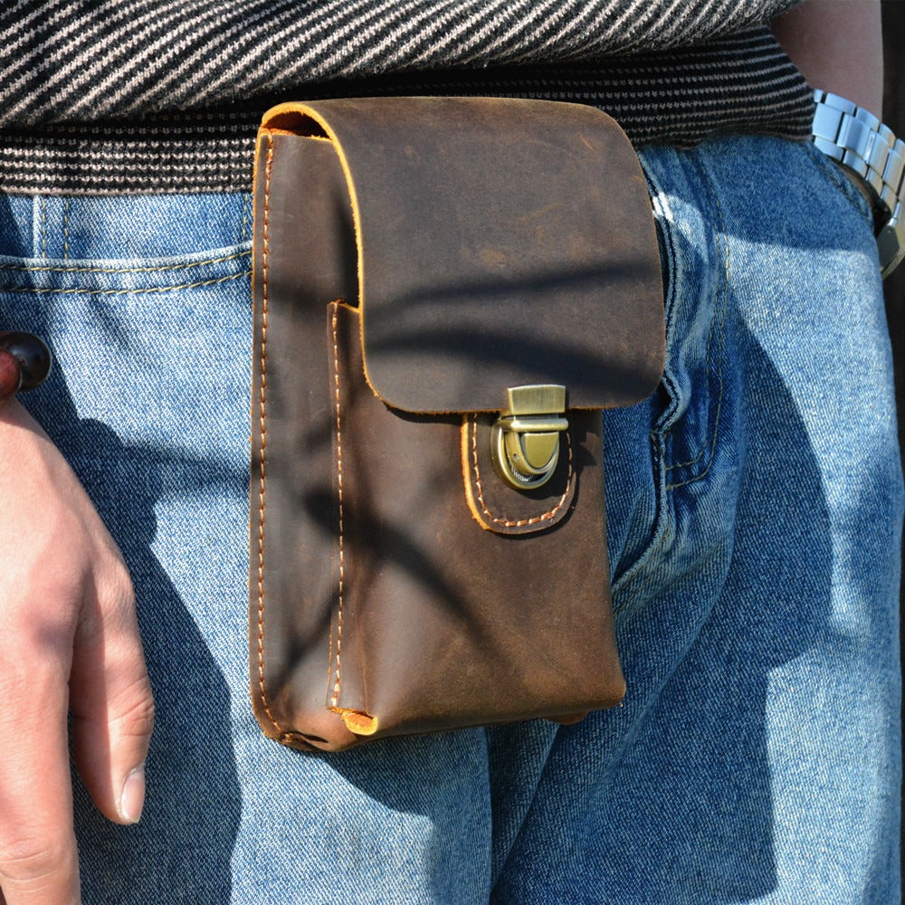 Design: Tan Leather Cell Phone Holster Belt Pouch Leather Waist Bag Mens BELT BAG Belt Holster For MenOverview: