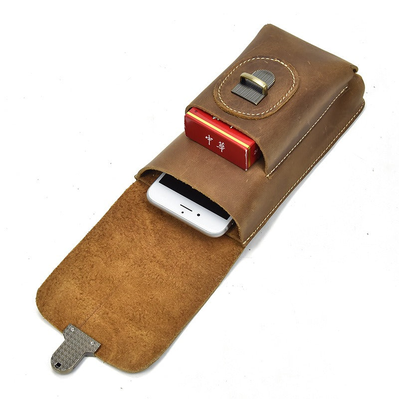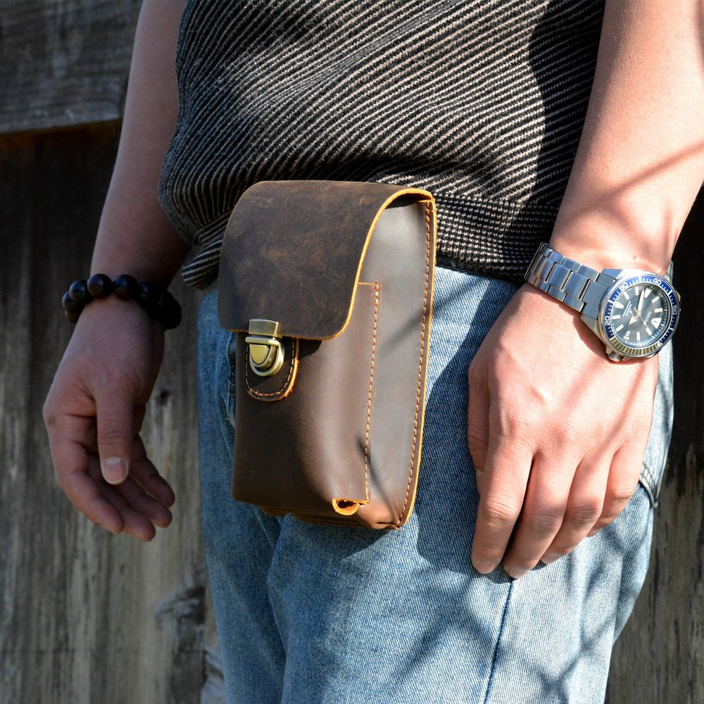 Design: Tan Leather Cell Phone Holster Belt Pouch Leather Waist Bag Mens BELT BAG Belt Holster For Men