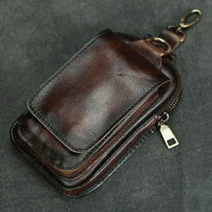 Design: Tan Leather Mens Phone Holster Belt Pouch Mini Waist Pouch Belt Bags For Men