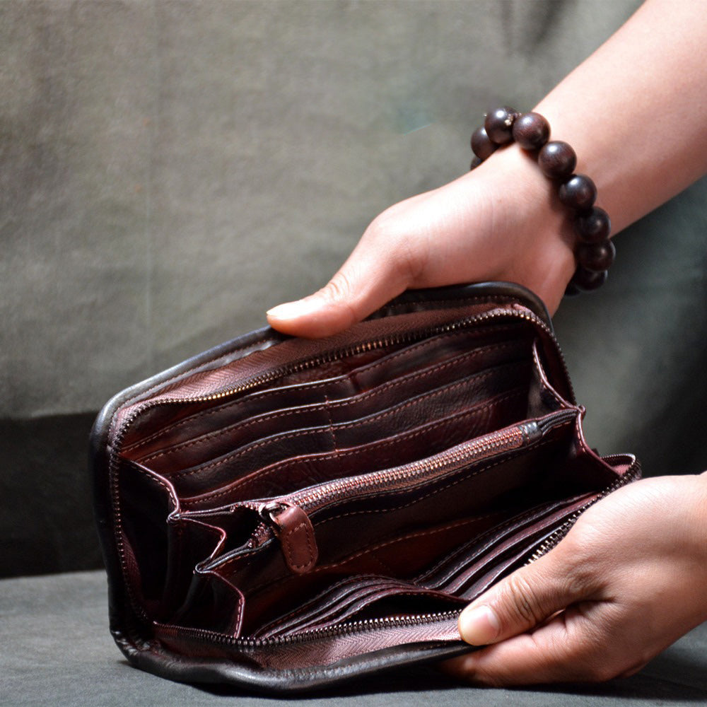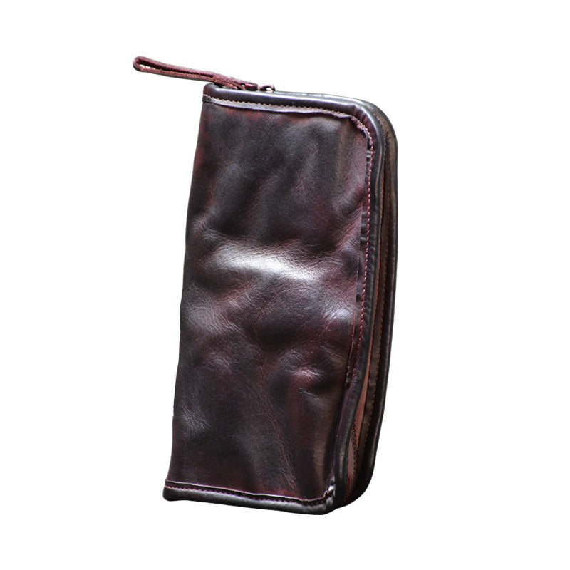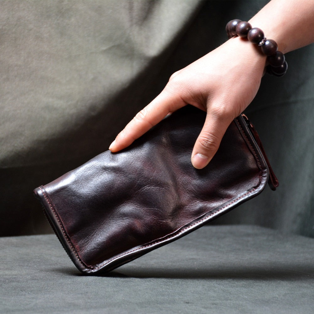 Design: Tan Leather Mens Zipper Long Wallet Wrinkled Zipper Clutch Wallet Large Wallet for Men