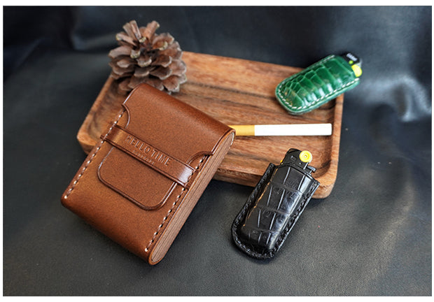 Style: Wooden Men Leather 20pcs Cigarette Case Custom Cigarette Holder for Men